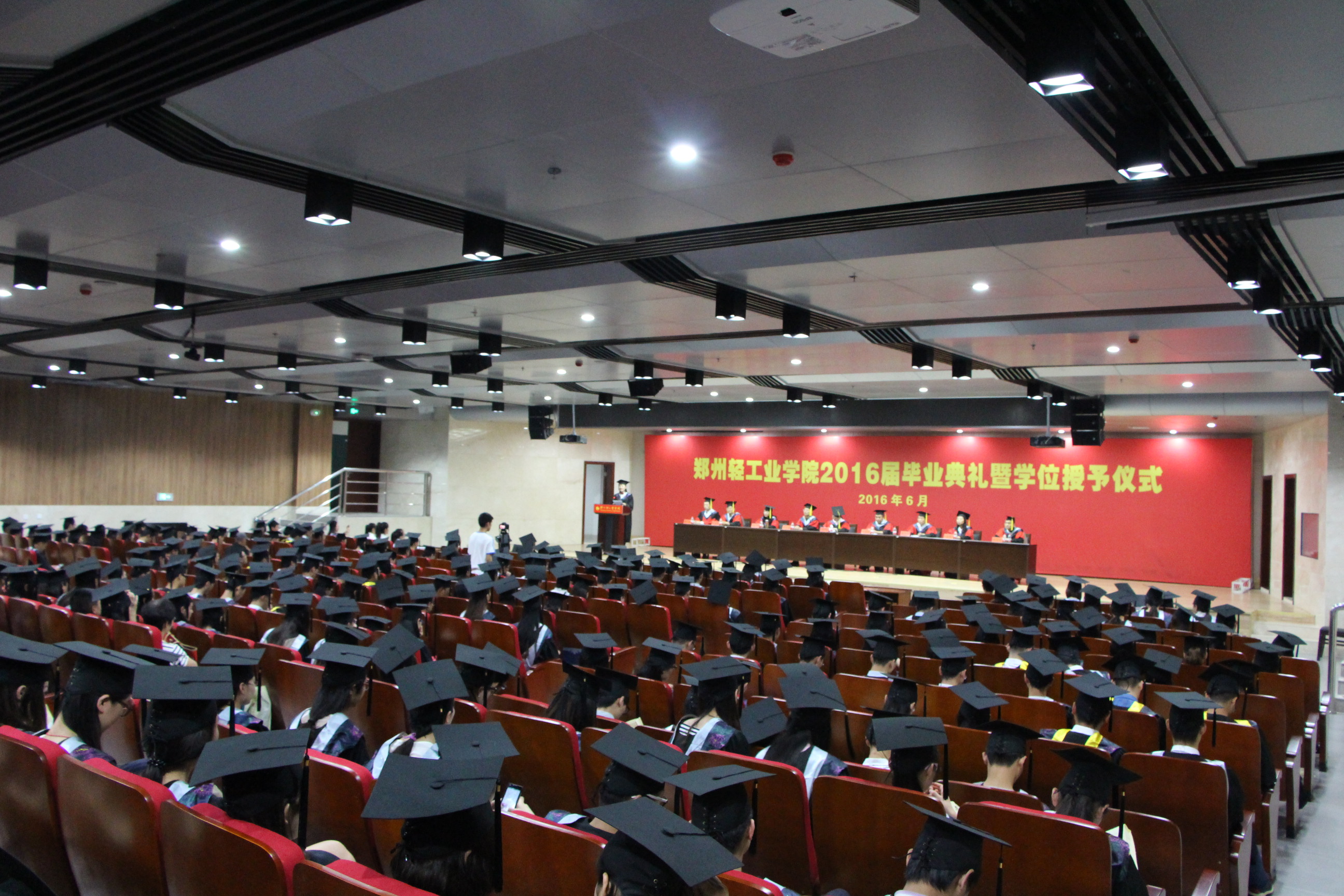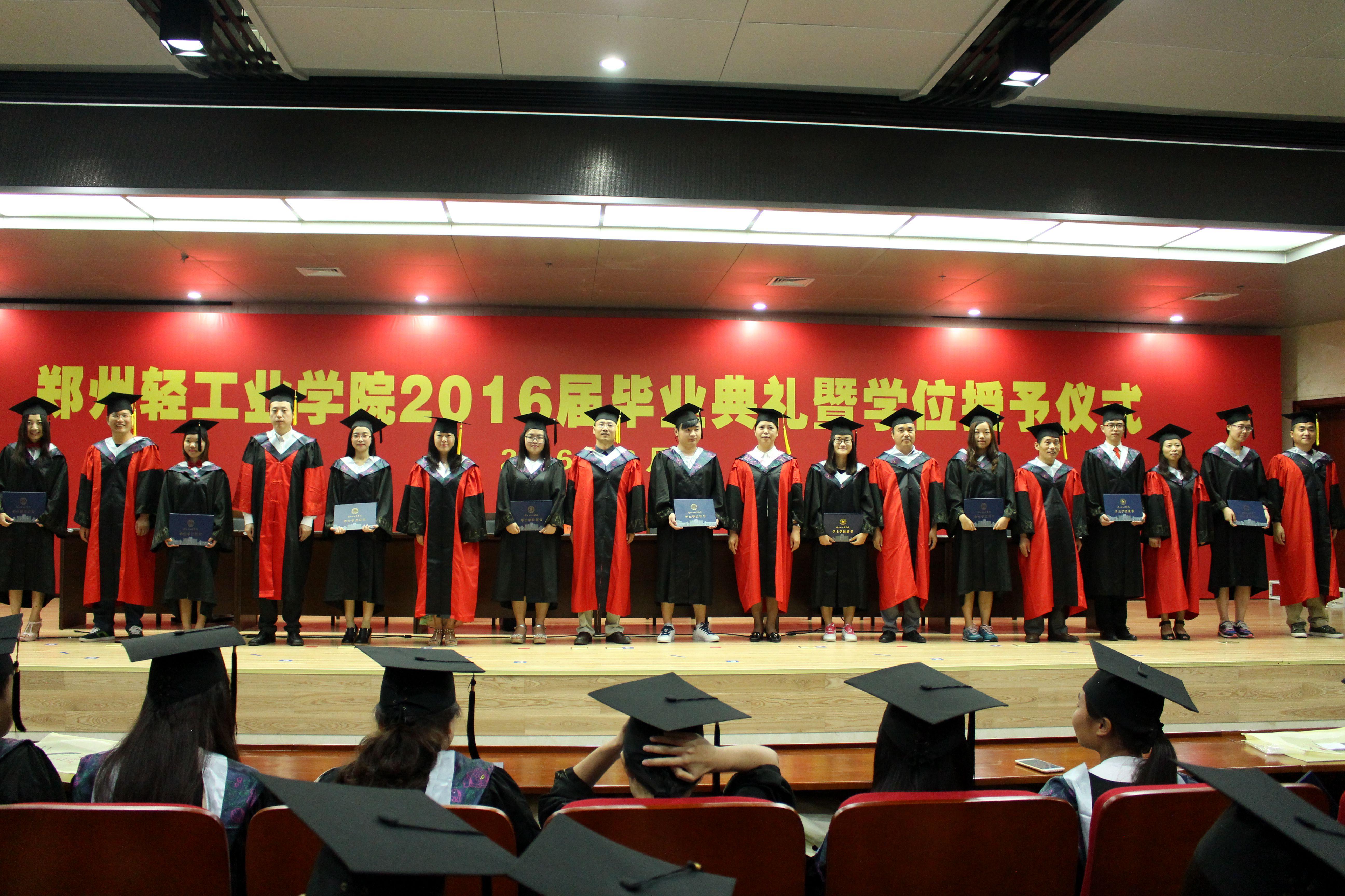 伴随着节奏明快的凯旋进行曲,554名本科毕业生依次走上主席台,学院领导、导师为每一位学位获得者扶正流苏,颁发学位证书,并亲切地与学生握手祝贺、合影留念。最后在各位老师及同学们热烈的掌声中,2016届毕业生学士学位授予仪式圆满结束。