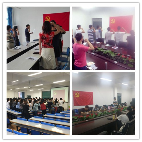 支部大会上,每一位师生党员结合自身工作、学习实际,回顾自己入党时的心路历程,再次回忆了入党之初的喜悦和激动之情,联系学党章党规的实际,认真总结对党的认识和自己的政治追求,深刻领悟习近平总书记系列讲话的基本精神和实践要求,进一步明确工作、学习的思路和目标,并表达了对党的深切祝福。最后,面对鲜红的党旗,各支部成员在支部书记的带领下,紧握右拳,庄严宣誓。
