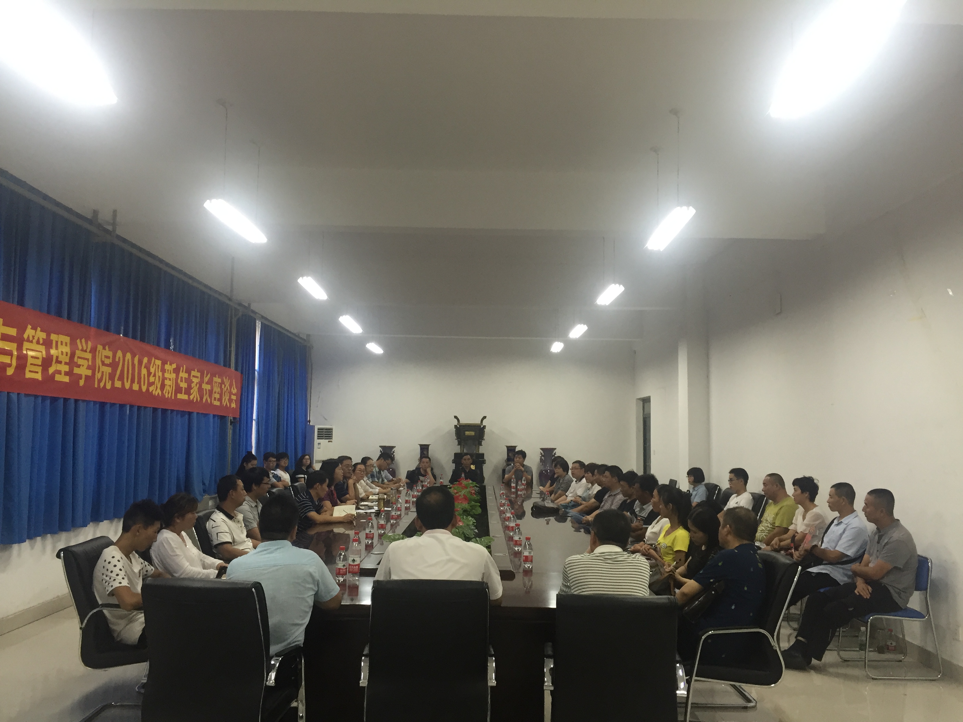 为加强与新生家长的沟通,促进学院与家长、学生之间的情感交流,帮助学生树立正确的人生观、价值观,9月7日下午3:00,经济与管理学院在经管楼116召开了2016级新生家长座谈会。经济与管理学院党总支书记邢晟、院长刘珂、党总支副书记陈章美、分团委书记姚少华、新生辅导员陈昱、刘海廷、陈思萌参加了此次座谈会。座谈会由党总支副书记陈章美主持。
