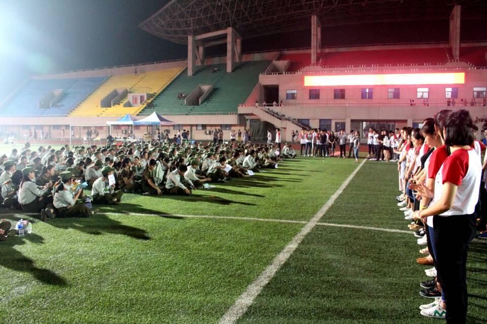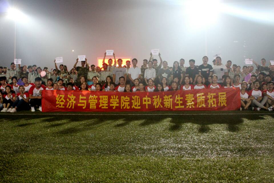 月到中秋分外明,每逢佳节倍思亲。在我国传统佳节中秋节来临之际,让离家求学的学子们感受到学校的温暖,同时为培养新生的团队精神、集体意识和积极向上的生活态度,加强新生之间的交流与沟通,9月14日晚,经济与管理学院在我校科学校区体育场上举办了2016级迎中秋新生拓展训练。承担我院新生军训的9名教官,经济与管理学院分团委书记姚少华,全体新生辅导员马春兴、陈昱、刘海廷、陈思萌老师,部分学生干部和800余名新生参加本次拓展训练。