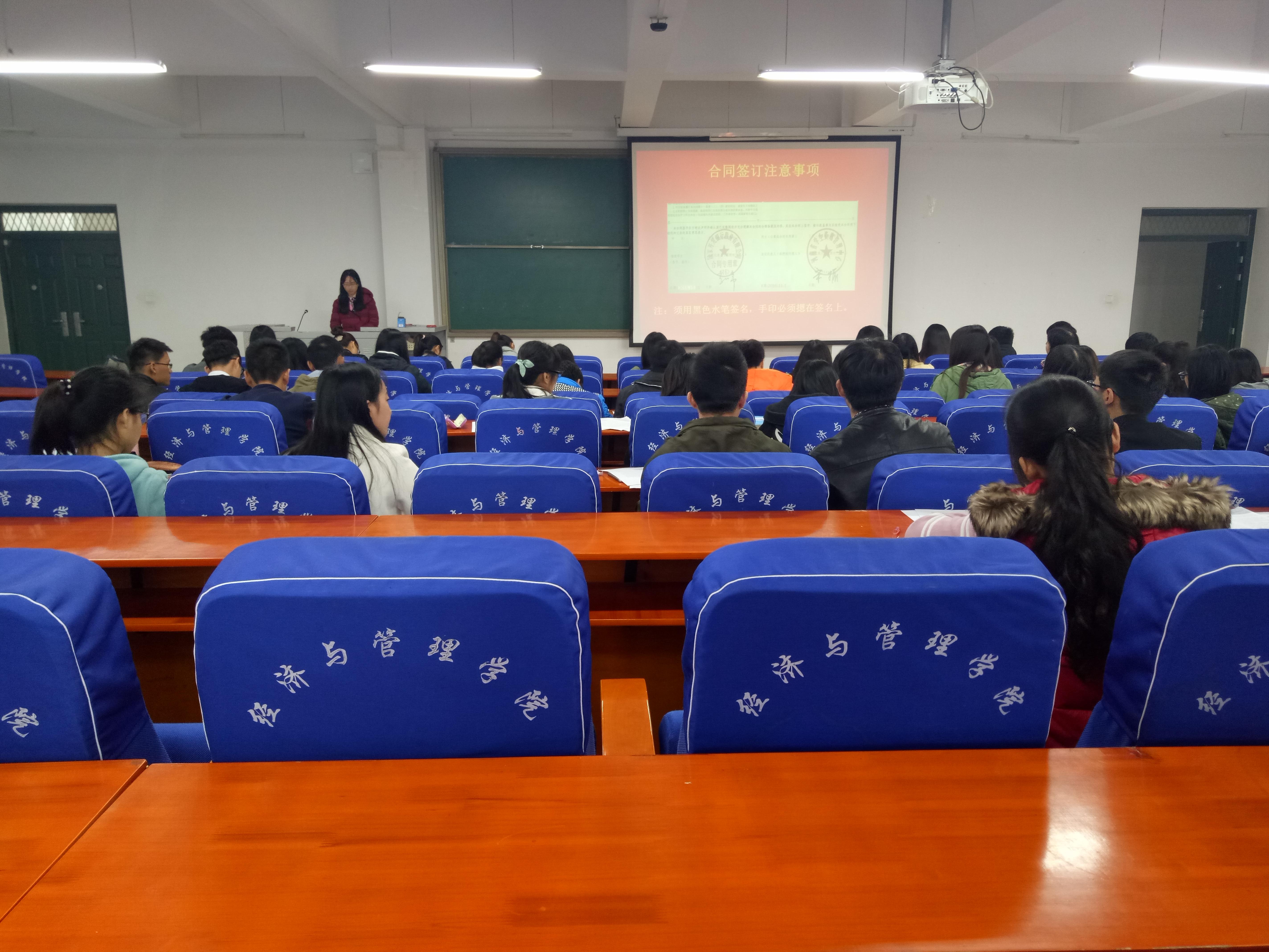 为保证我院校内助学贷款工作顺利进行,同时教育广大学生诚信做人,经济与管理学院于2016年11月7日在经管楼211召开2016年度国家助学贷款合同签订暨诚信教育大会,负责贷款的老师及全体贷款学生参加了此次会议。