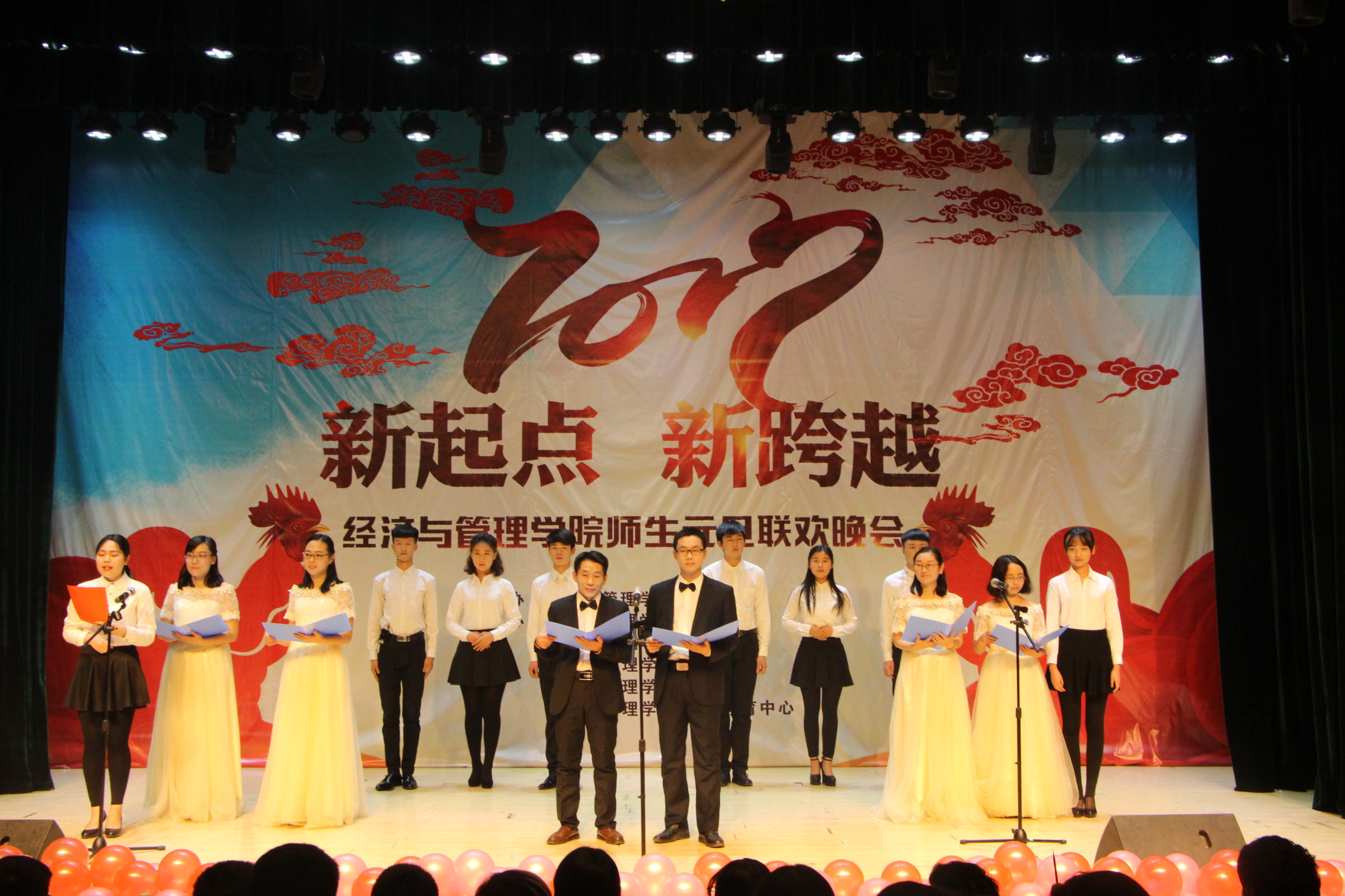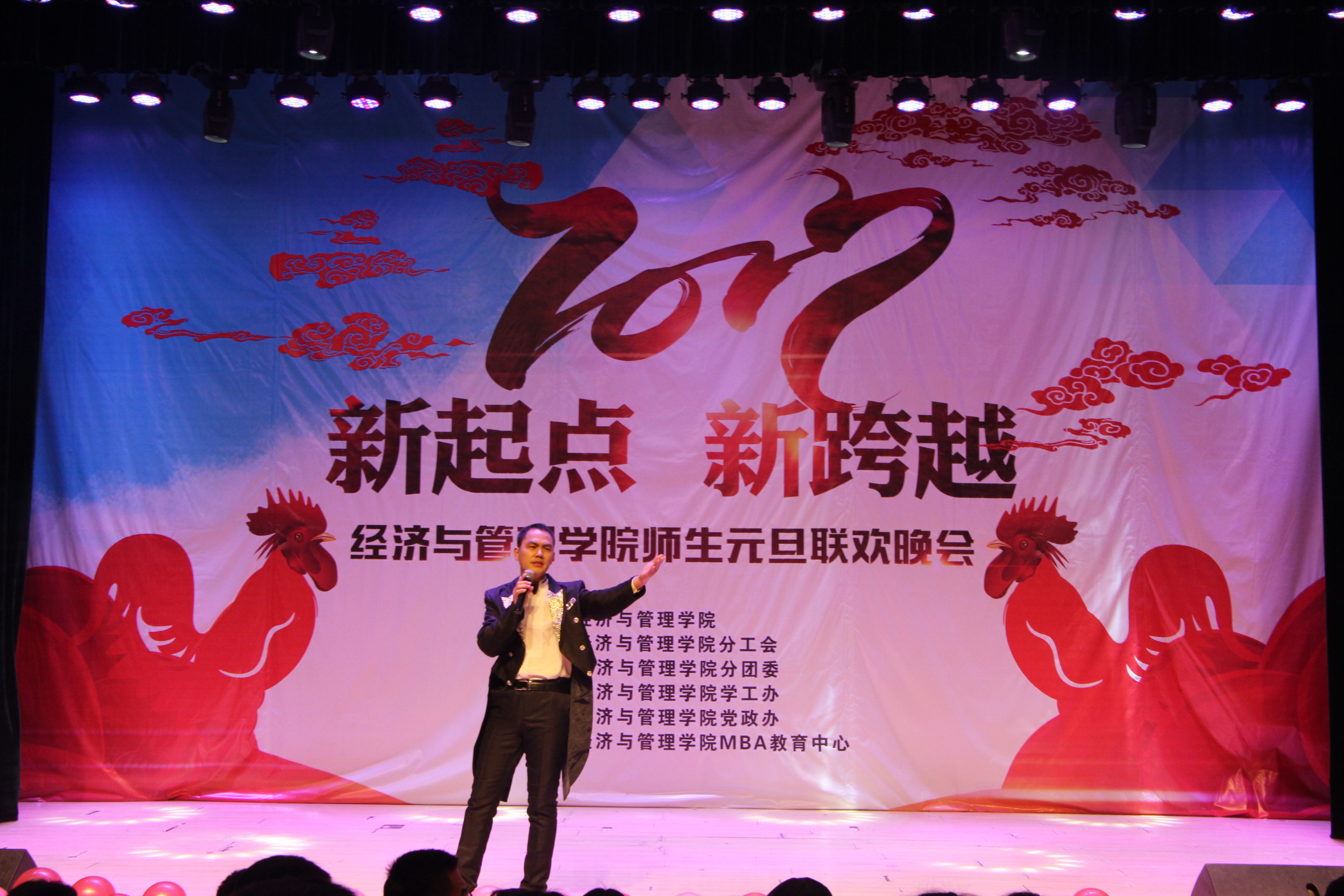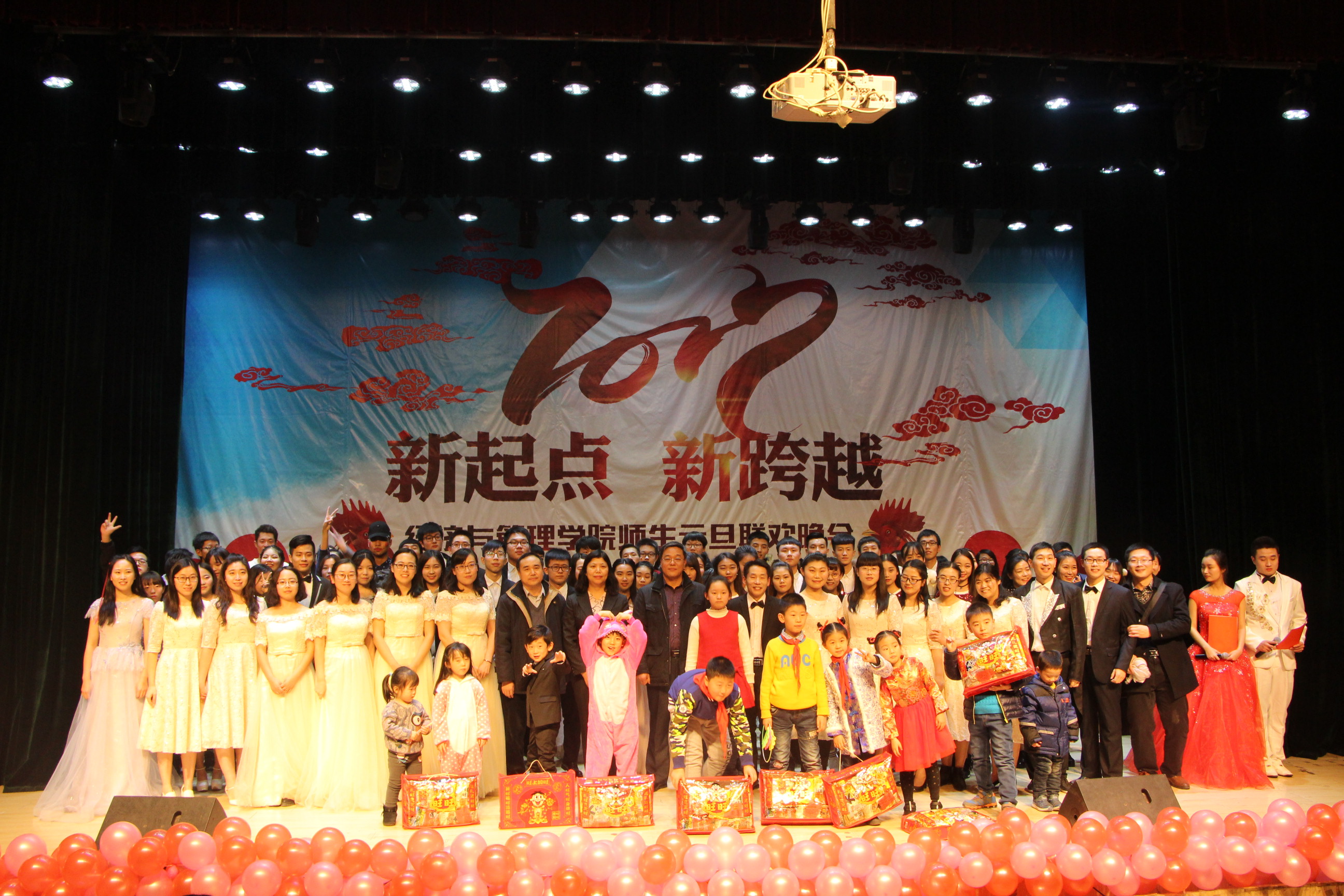 本次“新起点,新跨越”师生元旦联欢晚会,彰显了我院奋发拼搏、憧憬未来的精神风貌。晚会师生情的交流,让现场气氛热情高涨,其乐融融,相信我院全体师生将以此次晚会为起点,告别2016,展望2017,在新的一年里让经济与管理学院以最美好的姿态朝新的目标奋勇前进,努力拼搏,腾飞梦想,再创佳绩。
