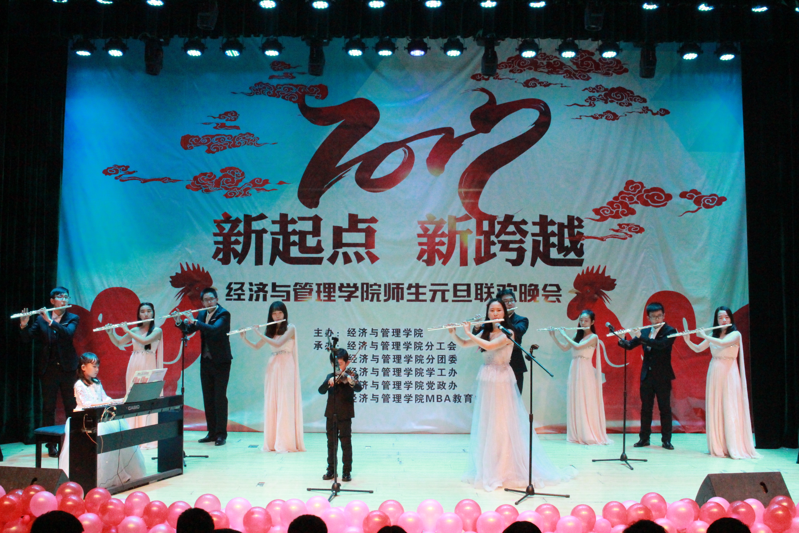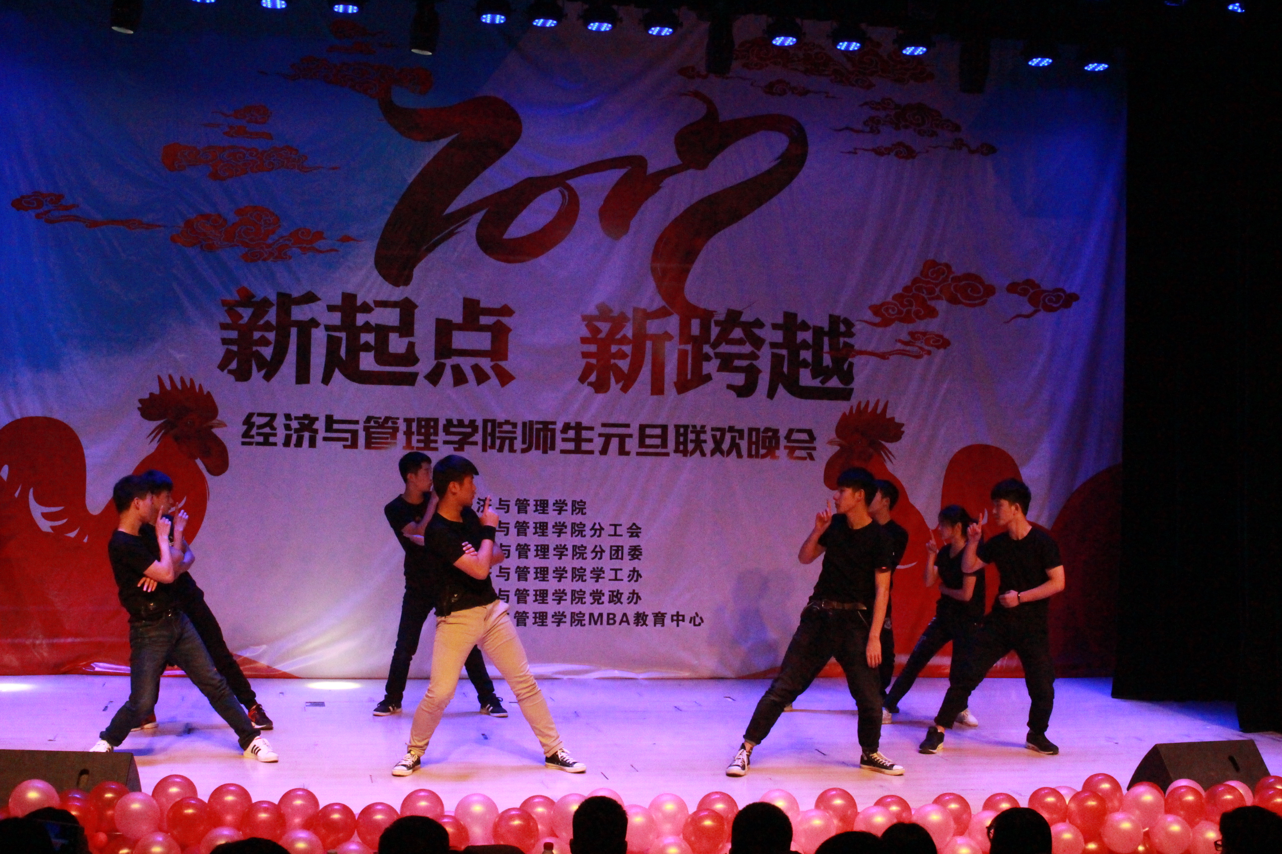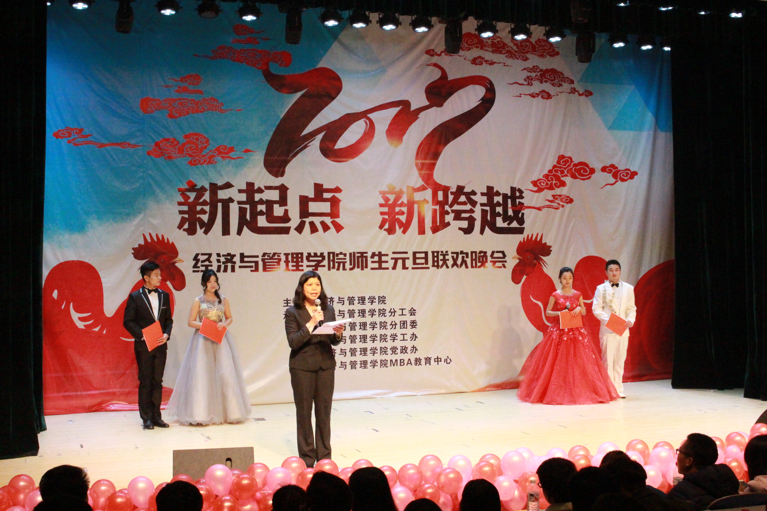 本次“新起点,新跨越”师生元旦联欢晚会,彰显了我院奋发拼搏、憧憬未来的精神风貌。晚会师生情的交流,让现场气氛热情高涨,其乐融融,相信我院全体师生将以此次晚会为起点,告别2016,展望2017,在新的一年里让经济与管理学院以最美好的姿态朝新的目标奋勇前进,努力拼搏,腾飞梦想,再创佳绩。