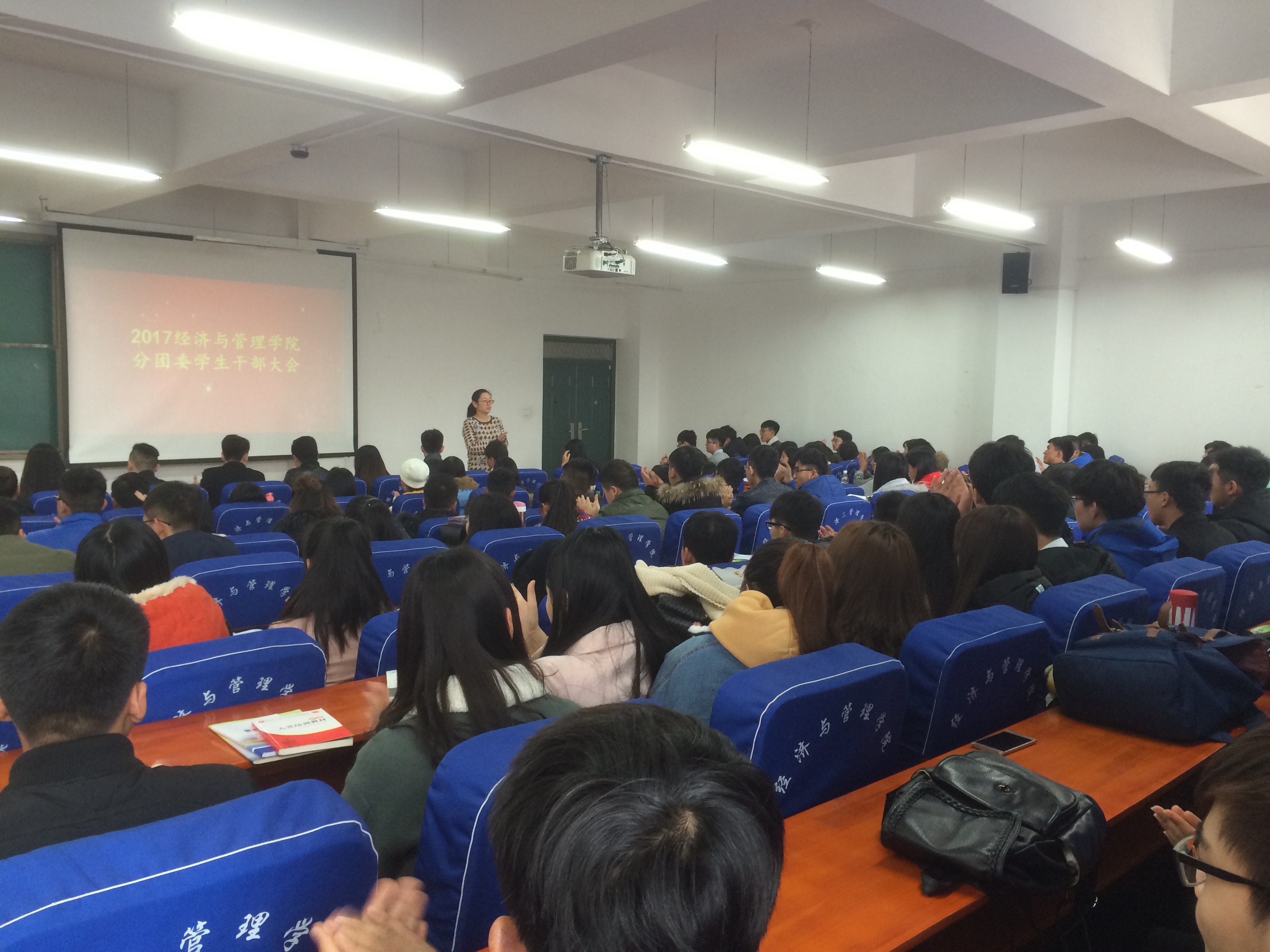 新学期伊始,为确保本学期学生工作高效有序地开展,2月22日中午12:00,经济与管理学院在经管楼211召开新学期学生干部大会,分团委书记姚少华老师、辅导员陈思萌老师以及全体学生干部出席了本次大会。