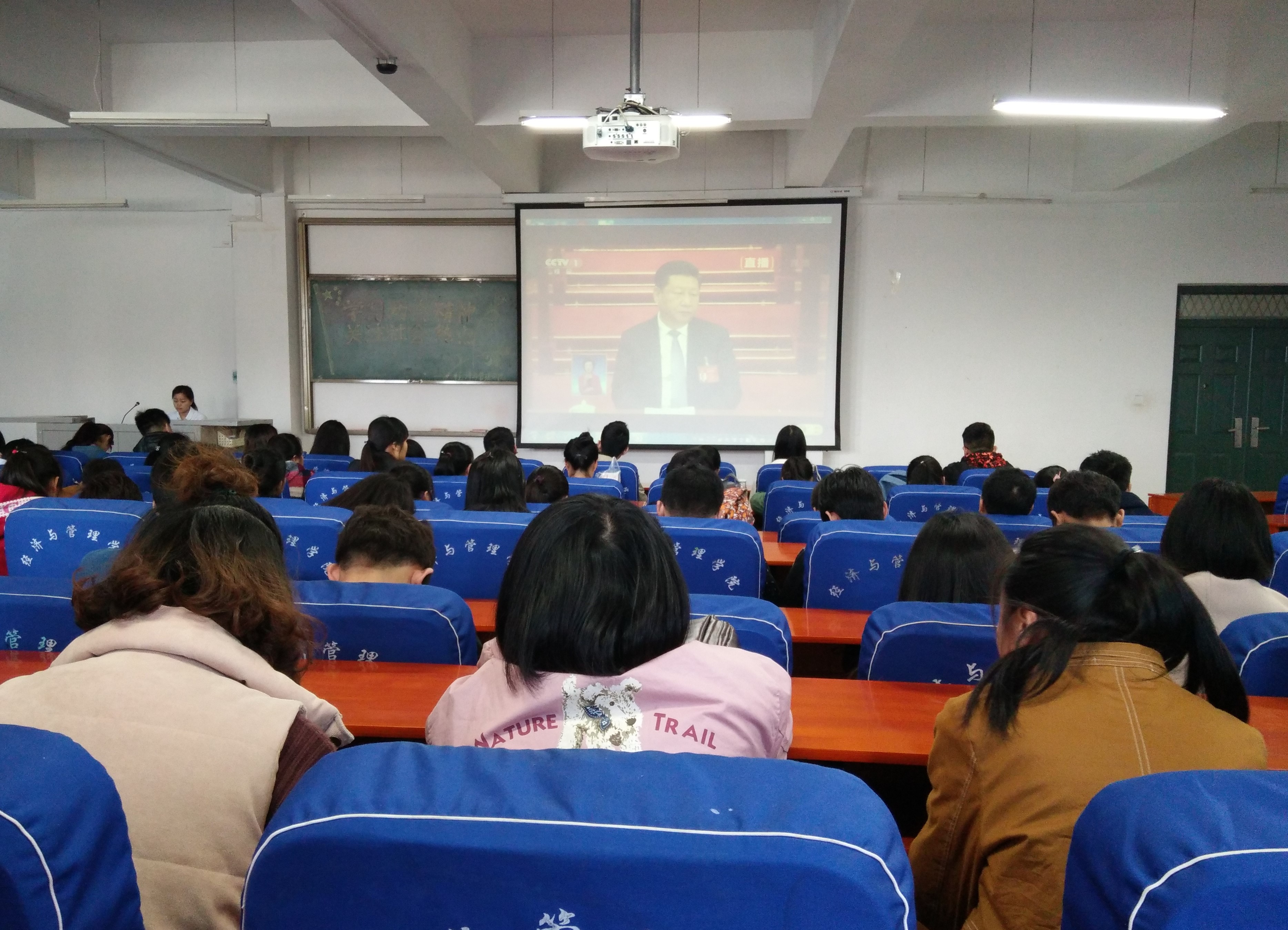 为提高我院学生对时事政治的关注度,让同学们更多了解国家的发展方向与动态,经济与管理学院分团委于2017年3月9日中午12点30分在经管楼211组织学生观看2017年“两会”召开的视频,学习“两会”的精神和内容。2016级各班班级代表共百余人参加了此次活动。