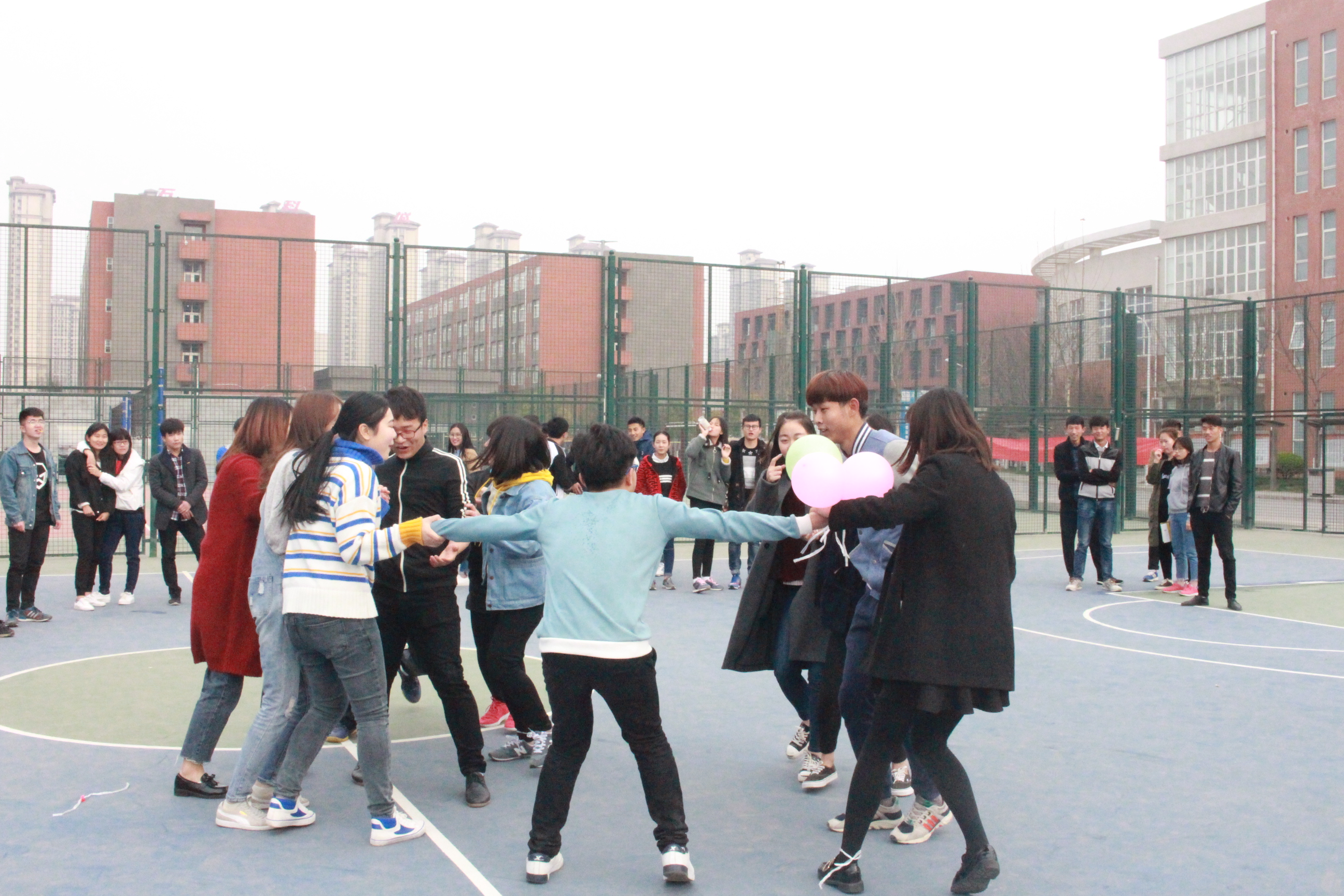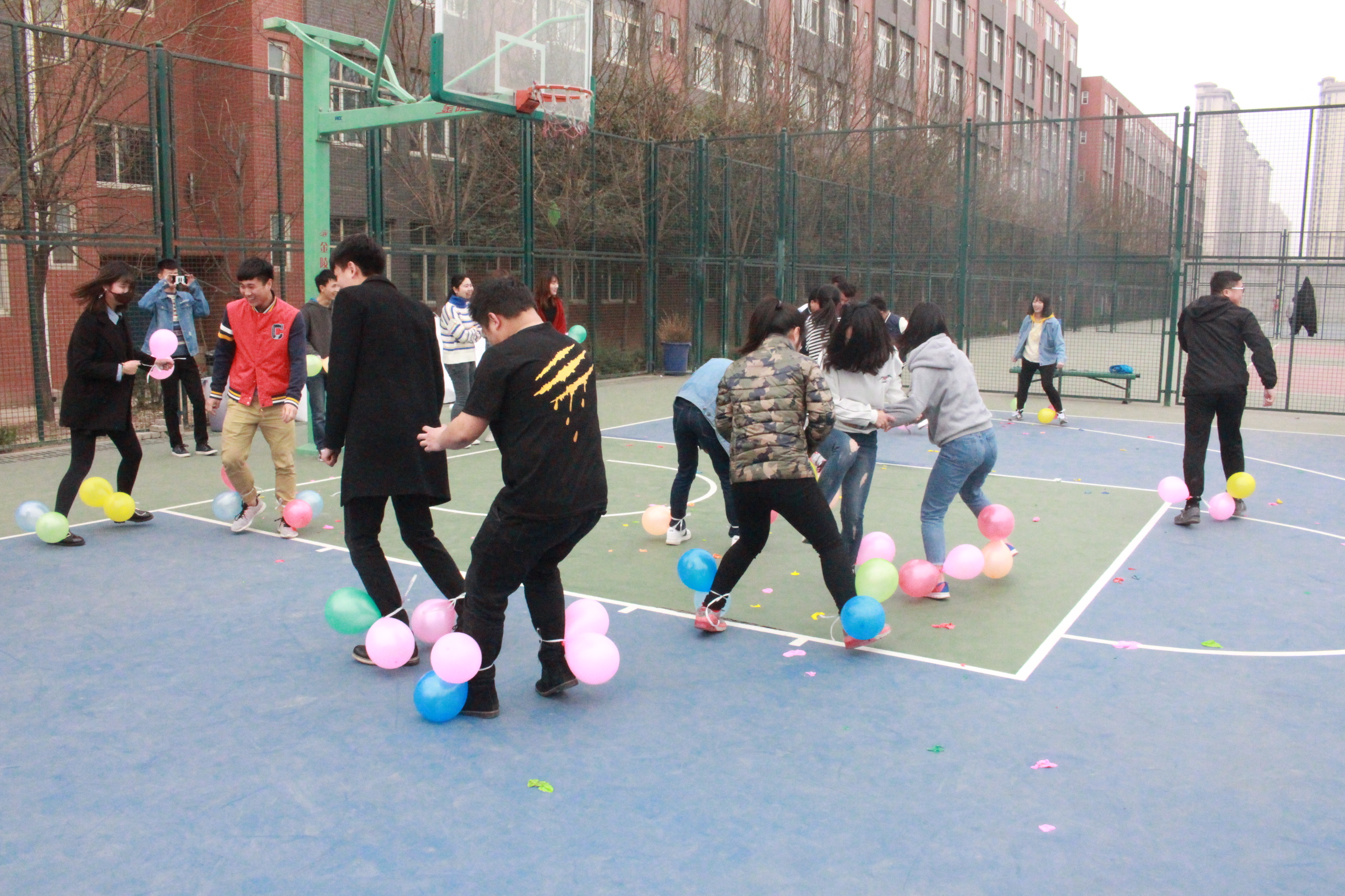 本次活动共设置了“踩气球”,“五毛一块”“南辕北辙”等五个游戏。学生会成员以部门为单元参与游戏,游戏规则中着重强调了安全第一,比赛第二的观念。使各位成员能在保护自身安全的情况下享受游戏的乐趣。此次游戏也准备了医务箱,使安全措施有保障。各位成员在游戏中团结协作,在体验式教育中收获了安全知识与快乐。踩气球是各部门分别出一男一女,双脚分别绑2个气球,在活动开始后,互相踩对方的气球,并保持自己的气球不破,气球保留最多的一方胜出;“五角一元”是男生代表5角,女生代表1元,大家站在一起围成大圈转圈走,裁判在中间喊出一个钱数,大家迅速组成相应的小团队;最后的瞎子背瘸子比赛,比赛的过程虽说辛苦,却也是最调动气氛,可以处处感受到团队合作的力量,这为本次素质拓展画上了一个圆满的句号。
