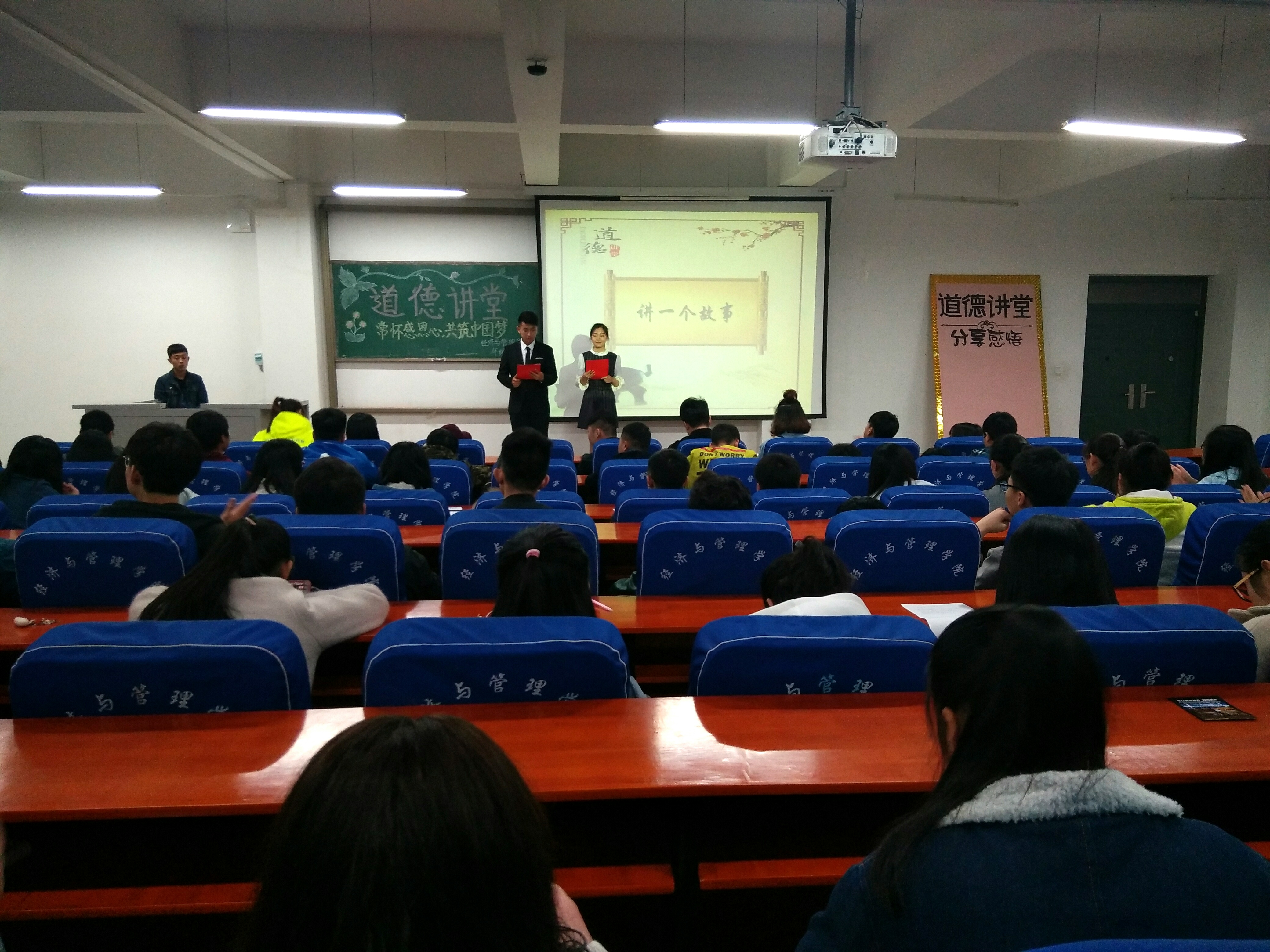 为切实推动我院社会主义核心价值体系建设,提高广大青年学生的道德修养,激发同学们的爱国之情,经济与管理学院于3月21日19:00在经管楼211举办了以“常怀感恩心,共筑中国梦”为主题的道德讲堂活动。本次活动由院年级团总支组织,共有150余名学生参加。