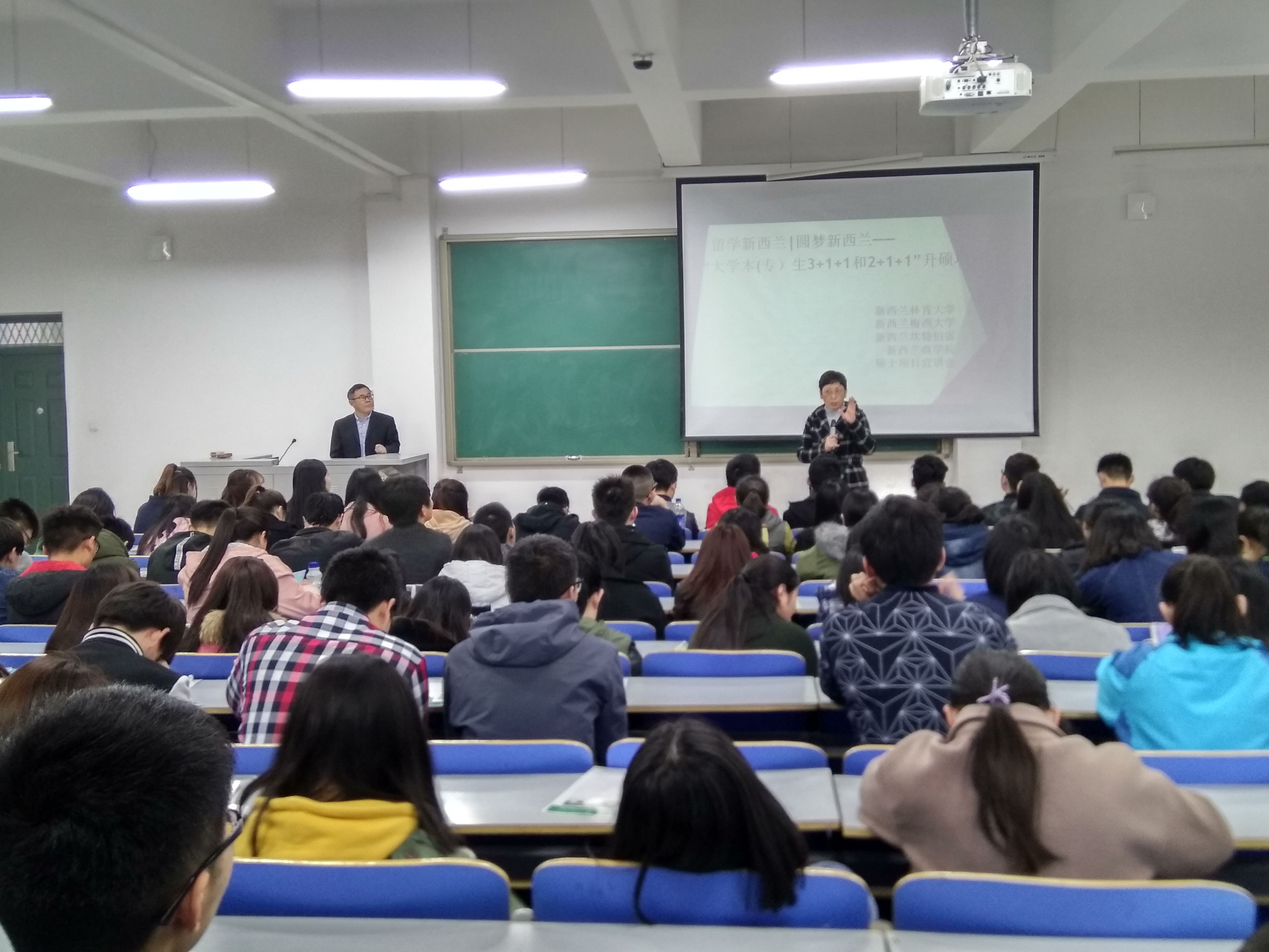 为培养国际化人才,中教国际教育交流中心(CCIEE)和新西兰商学院(New Zealand College of Business)合作开展了中新高校学分学历互认为基础的《3+1+1硕士》项目。经济与管理学院于3月23日14:30在经管楼309举行新西兰游学项目的宣讲会,数百名学生参加了此次宣讲会。本次宣讲会由国际交流与合作处处长谈红玲主持,新西兰商学院驻北京办公室代表李伟老师主讲。