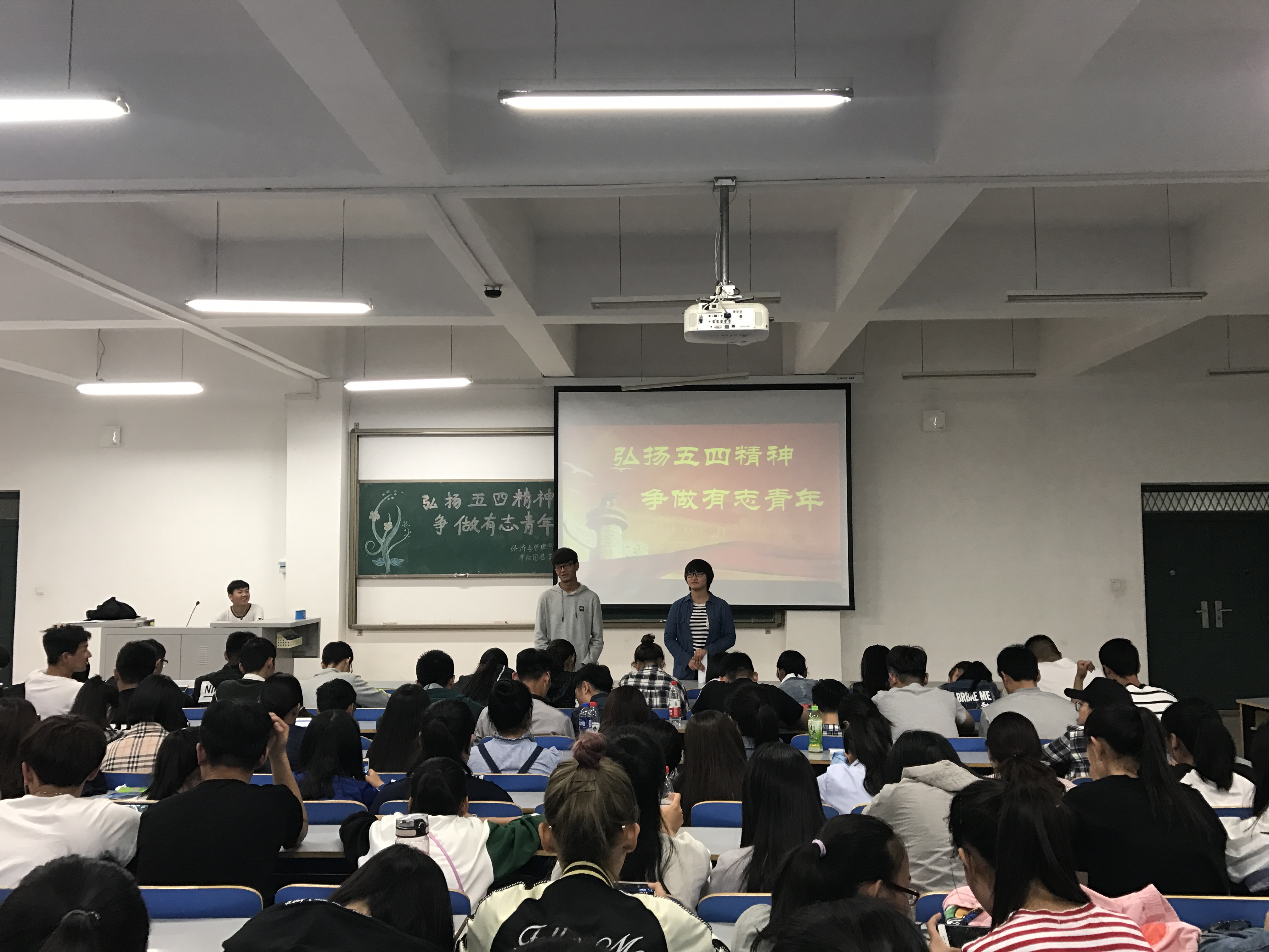 为培养当代大学生的责任意识,传承和弘扬五四精神,引导学生树立正确的核心价值观。经济与管理学院于4月27日19点30分在经管楼309举办了以“弘扬五四精神,争做有志青年”为主题的团日活动,我院电子商务专业全体同学参加此次活动。