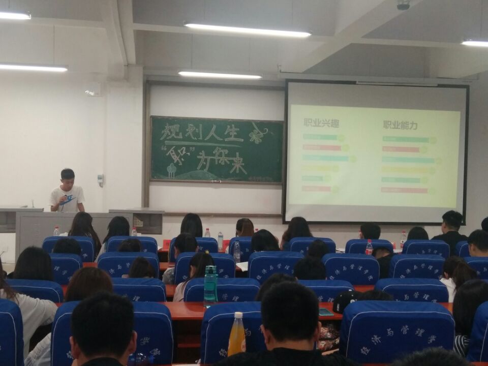 为深入贯彻落实科学发展观,帮助学生树立正确的人生目标和就业观念,5月18日中午12:30在经管楼211举办了“规划人生,职为你来”大学生职业生涯规划大赛。我院党总支副书记陈章美,学工办副主任王静老师及各班学生代表共百余人参与了本次大赛。