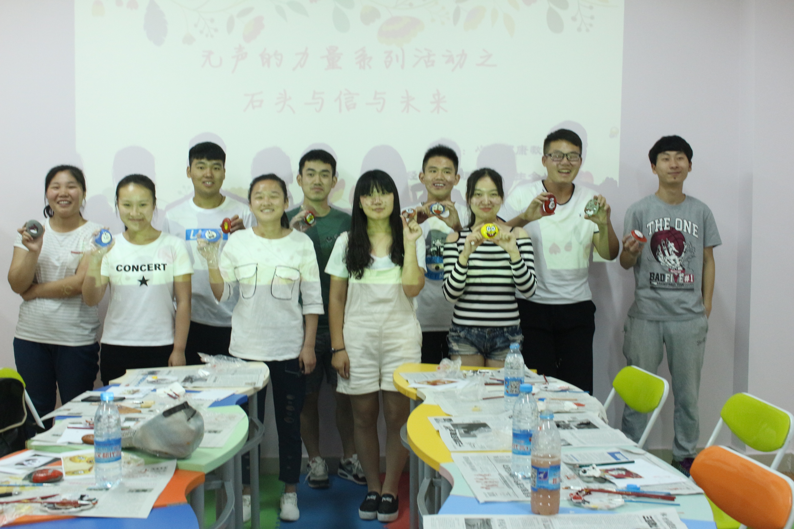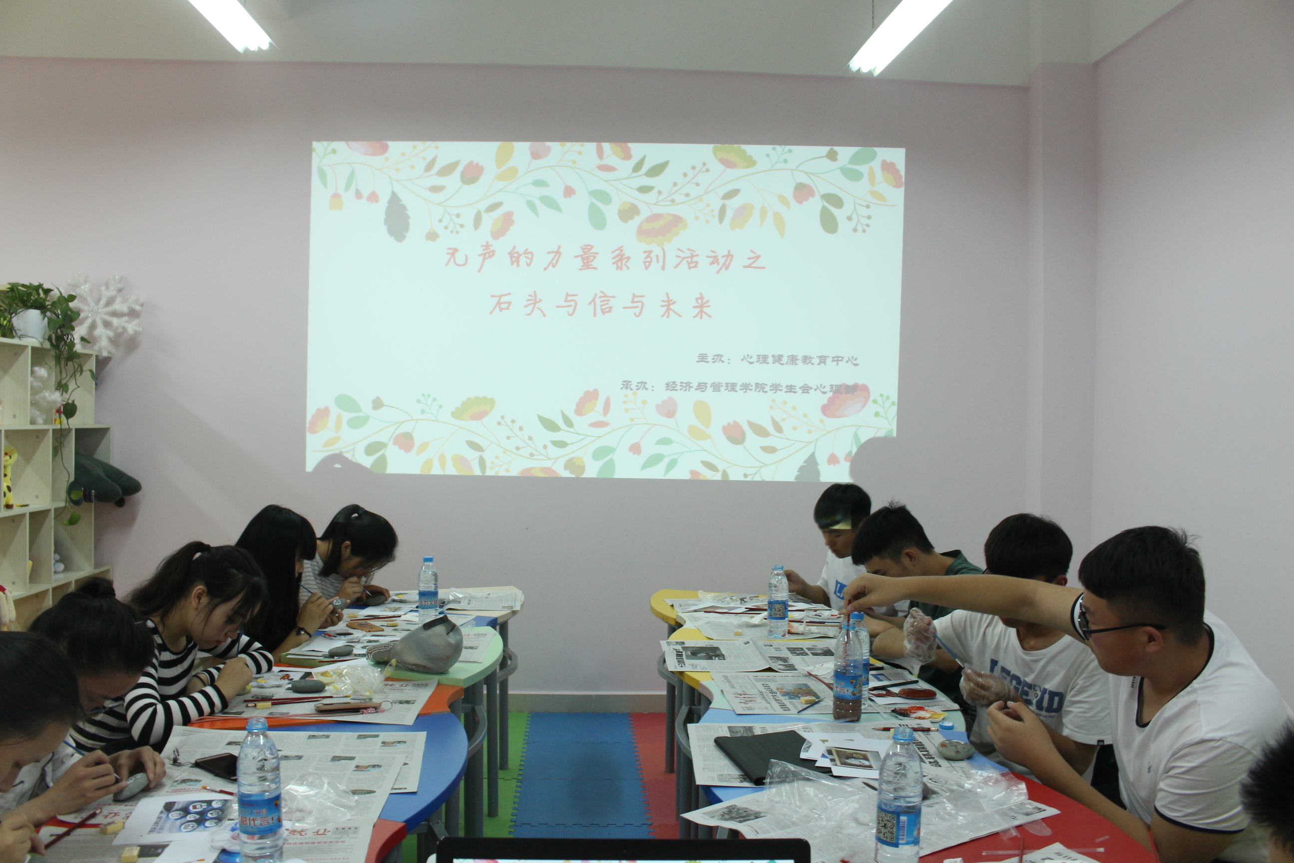 本次活动通过行为教化的方式使同学们在彩绘石头的过程中找回自我、回归初心,在动手实践中学会思考,重拾对未来的信心;使同学们能够以更加积极健康的态度面对生活,不断进取向上,摆脱迷茫的当下,传递心与心之间的力量。