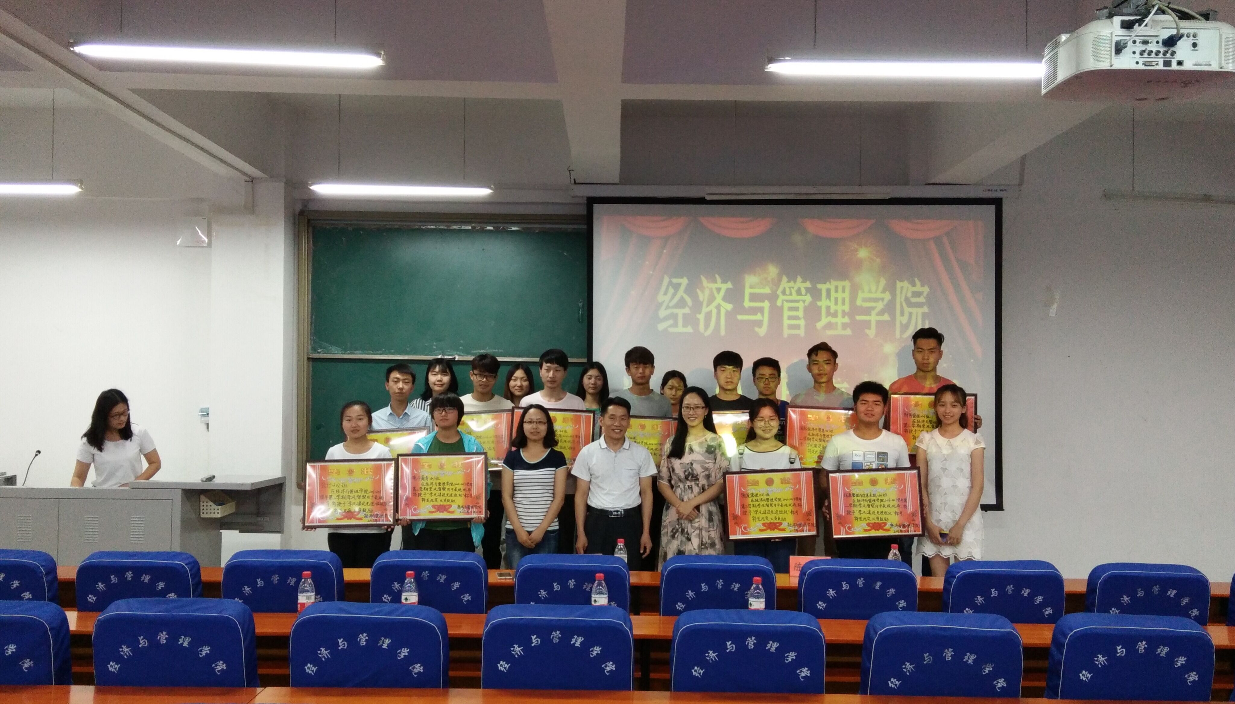为进一步加强学风建设,提高学生学习的积极性和主动性,展示我院学生奋发图强,努力学习的精神风貌,5月25日中午12:30,经济与管理学院在经管楼211召开了学风督察月表彰大会。经济与管理学院党总支副书记陈章美、学工办副主任王静、分团委老师陈思萌以及各班班长、团支书、学习委员等学生代表参加了表彰大会。