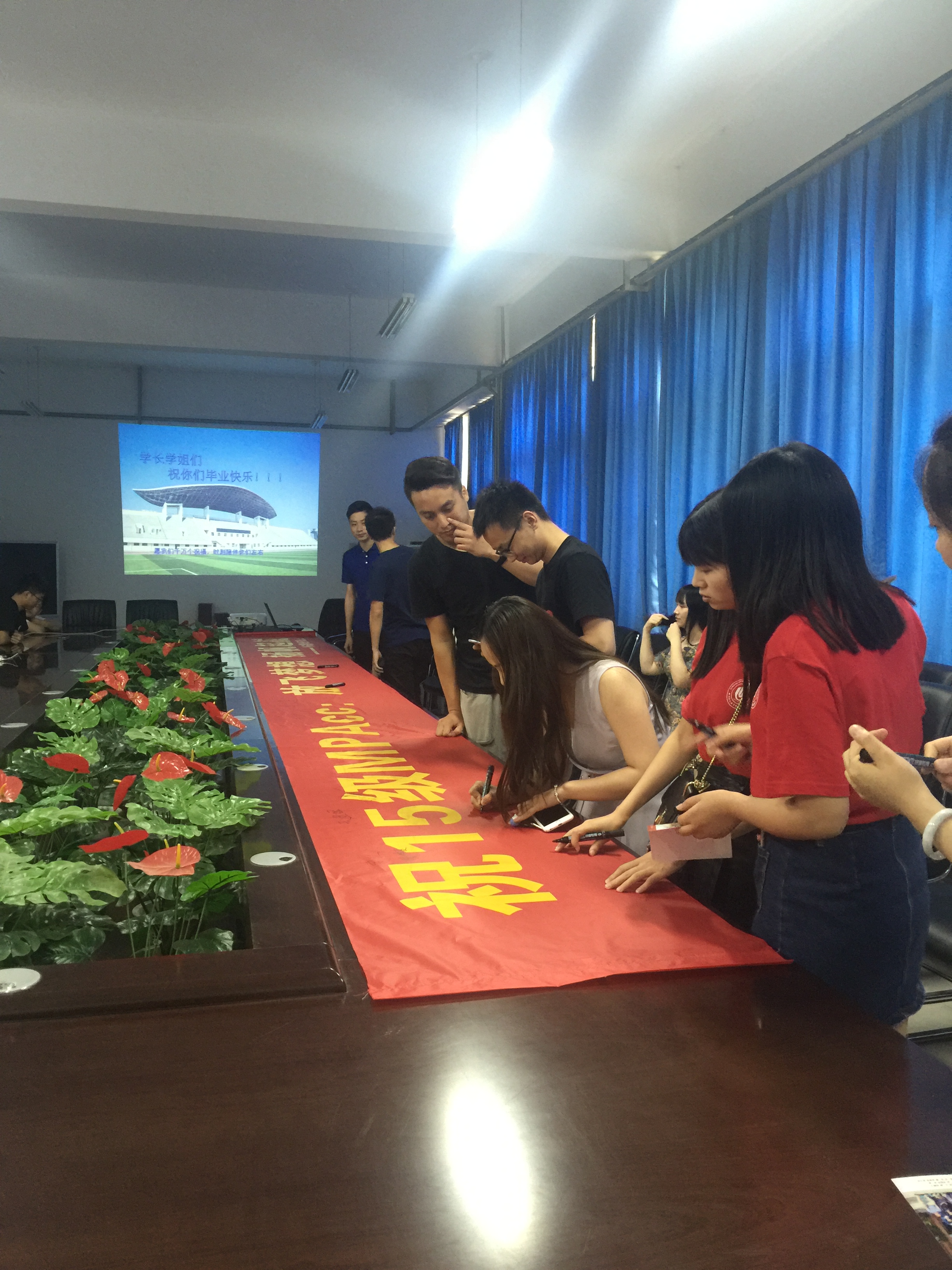 随后,15级学长徐宋康和孙曼丽作为毕业生代表,对16级MPAcc表达了自己的希望,希望同学们能够好好利用好自己剩余不多的研究生生活时间,充分准备毕业论文的同时,多考取一些相关资格证书,获取更多适应职场的技能。最后,16级MPAcc送出了毕业祝福,两届同学同时在条幅上签字留念,并合影留念。此次交流会的顺利开展,不仅促进了与毕业生之间的交流,也为在校研究生他们今后的进一步发展奠定了基础。