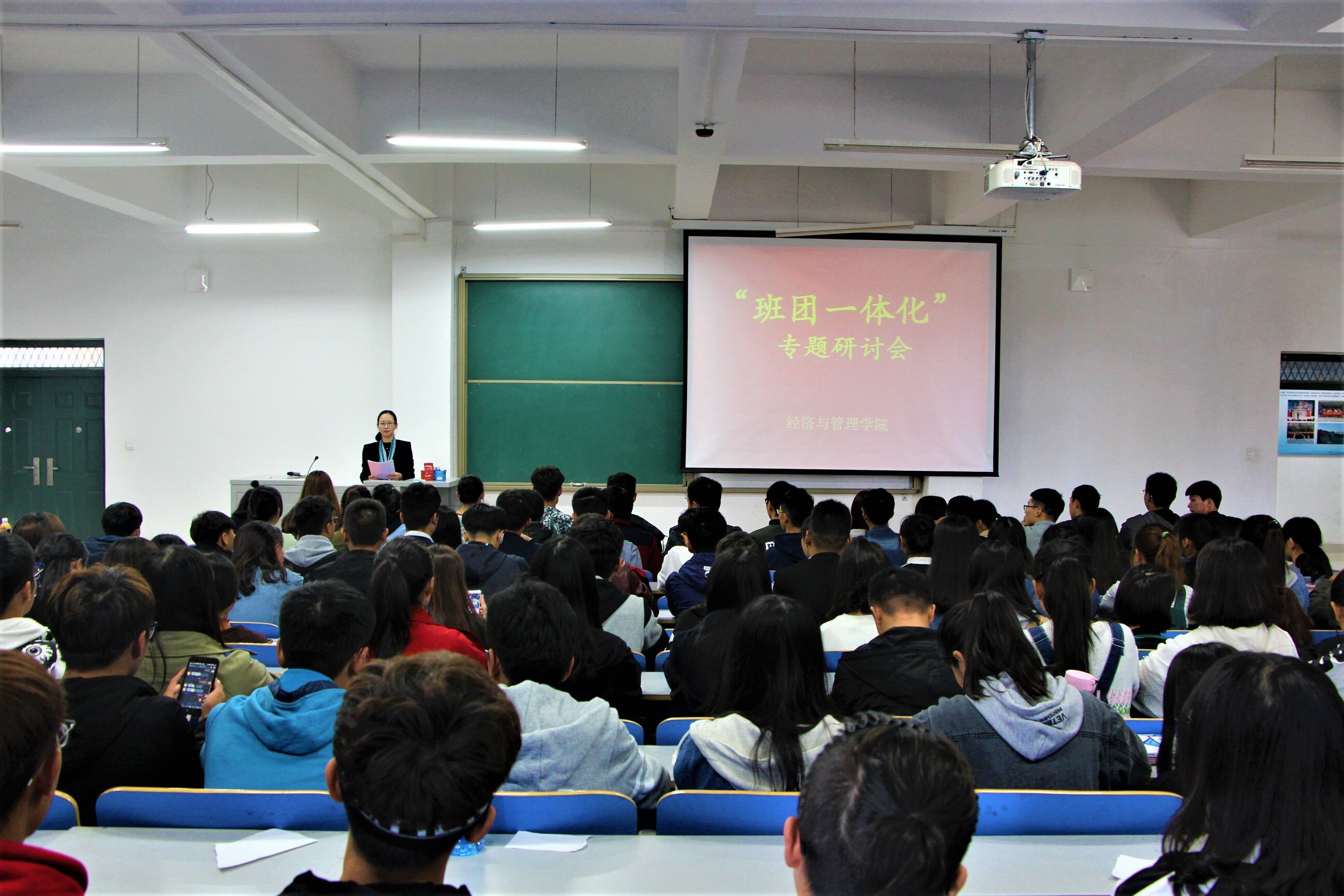 为了进一步提高团支部活力,增强我院团支部工作创新发展、创优建设的能力,积极推进改革高校共青团工作,贯彻落实《高校共青团改革实施方案》,经济与管理学院于10月11日下午19:00在经管楼211召开了关于“班团一体化”建设工作的专题研讨会。分团委陈思萌老师以及经济与管理学院全体学生干部参加了此次会议。