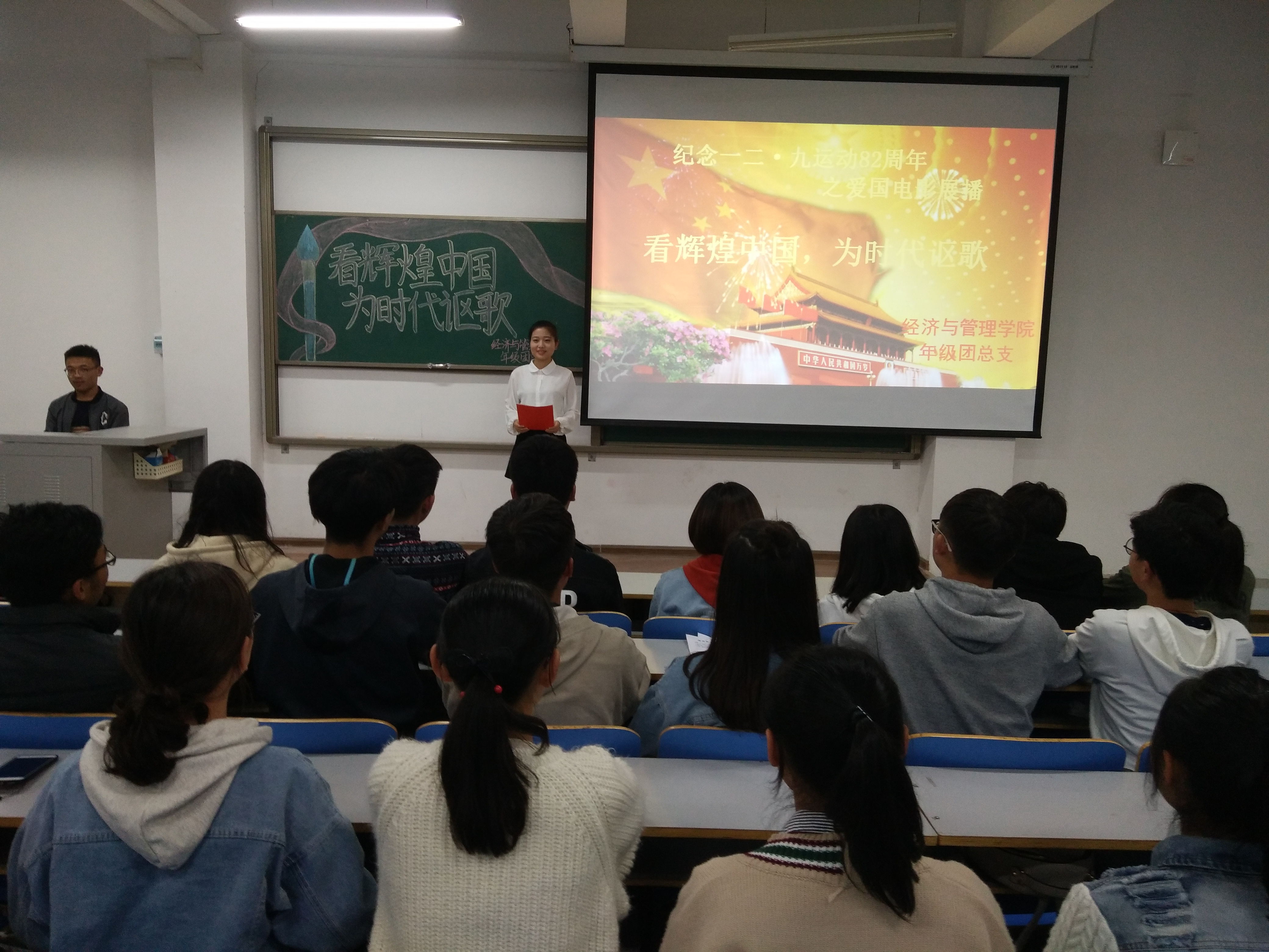 为纪念一二·九运动八十二周年,激发同学们的爱国热情,提高学生的政治素养与思想觉悟,11月10日晚上19:30,经济与管理学院在经管楼309举办了纪念一二·九运动82周年系列活动之爱国电影展播。