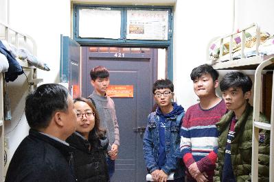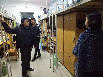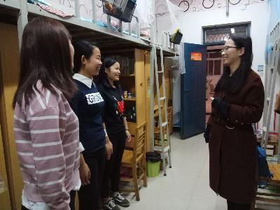 走访的过程中,邢书记就如何学习、寝室同学之间如何相处以及用电安全、寝室卫生等问题与同学们进行了亲切交流,并详细了解了学生的思想动态、学习情况、生活习惯等,希望同学们要珍惜同学友谊,互帮互助,互相包容,共同营造一个温馨和谐的寝室文化氛围。陈书记强调同学们要自觉遵守学校宿舍管理规定,禁止私拉电线和违章使用电器,提高安全意识,并提醒同学秋冬季是疾病高发季节,要求大家注意集体卫生和个人卫生,保持宿舍卫生整洁,勤开窗通风,勤晒被褥,多参加户外活动。其他几组老师也分别对各自走访宿舍的安全卫生情况、传染病的预防等相关方面跟同学们做了沟通和强调,并对个别卫生不达标的宿舍做了现场整改。