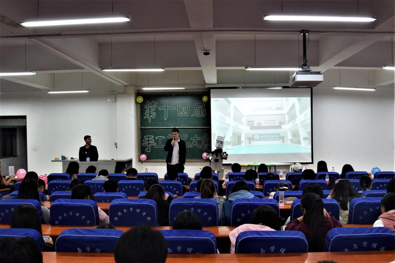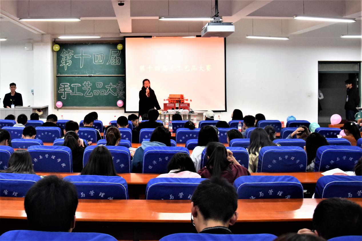为了贯彻“十九大思想”,坚定不移推进生态文明建设,提高当代大学生的动手能力,增强大学生的环境保护意识,营造良好的科学技术与文化氛围。2017年12月1日晚7点,经济与管理学院于经管楼211,举办了第十四届“留下一缕清香,放飞指尖梦想”手工艺品大赛。