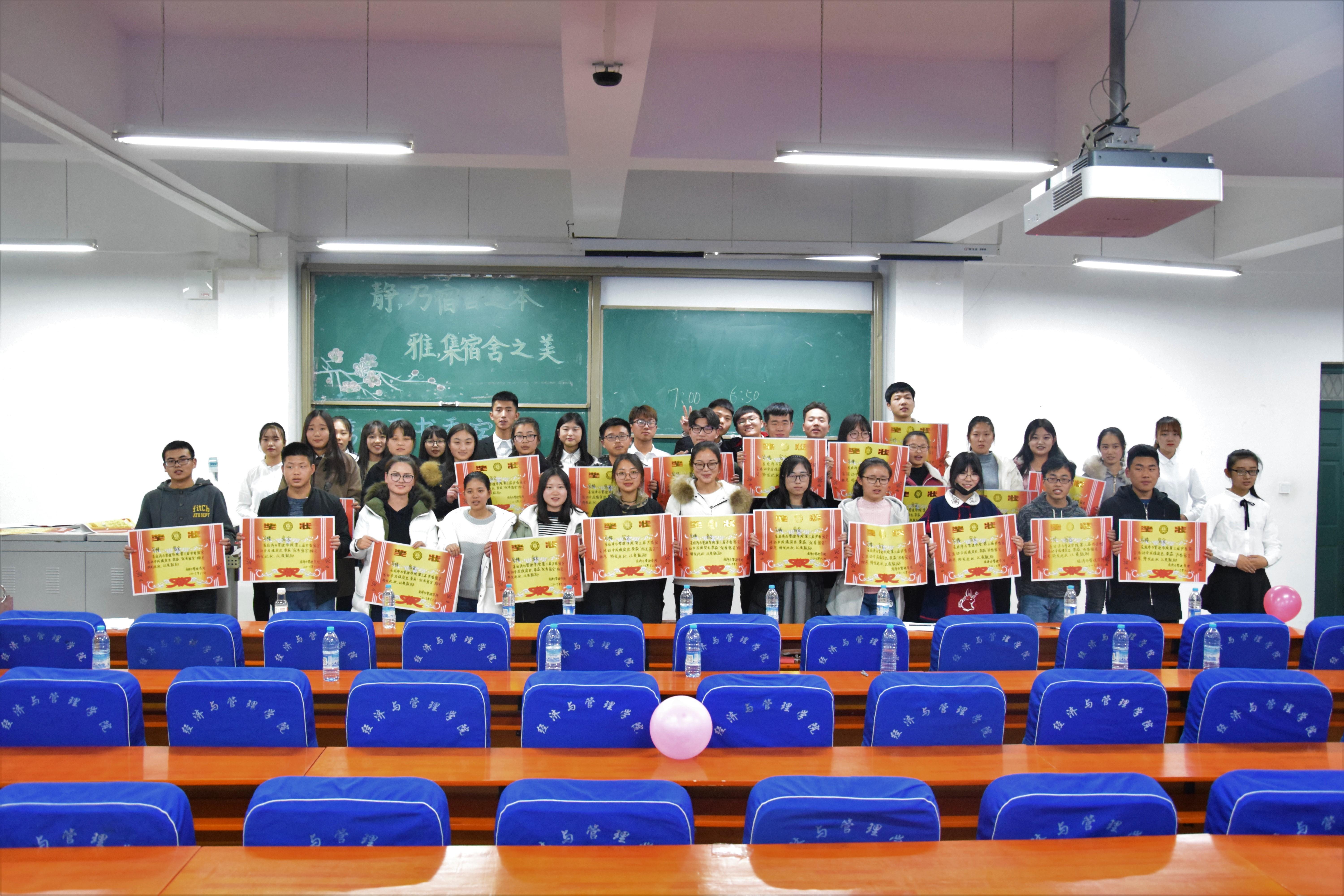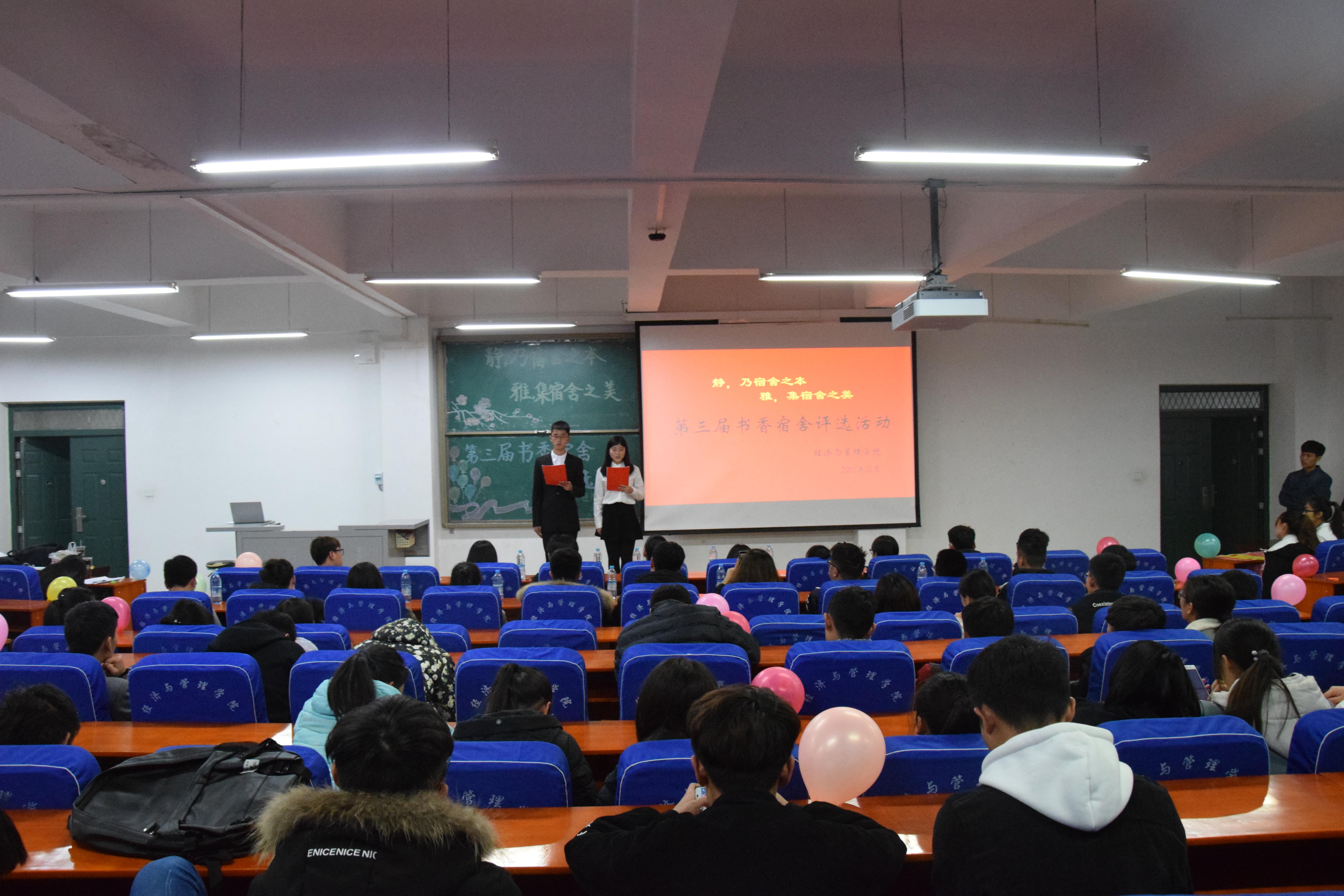 为进一步推进学校寝室文明的建设,激发同学们的学习热情,营造良好的学习生活氛围,经济与管理学院于12月3日下午19点在经管楼211举办了以“静,乃宿舍之本;雅,集宿舍之美”为主题的第三届书香宿舍评选大赛。