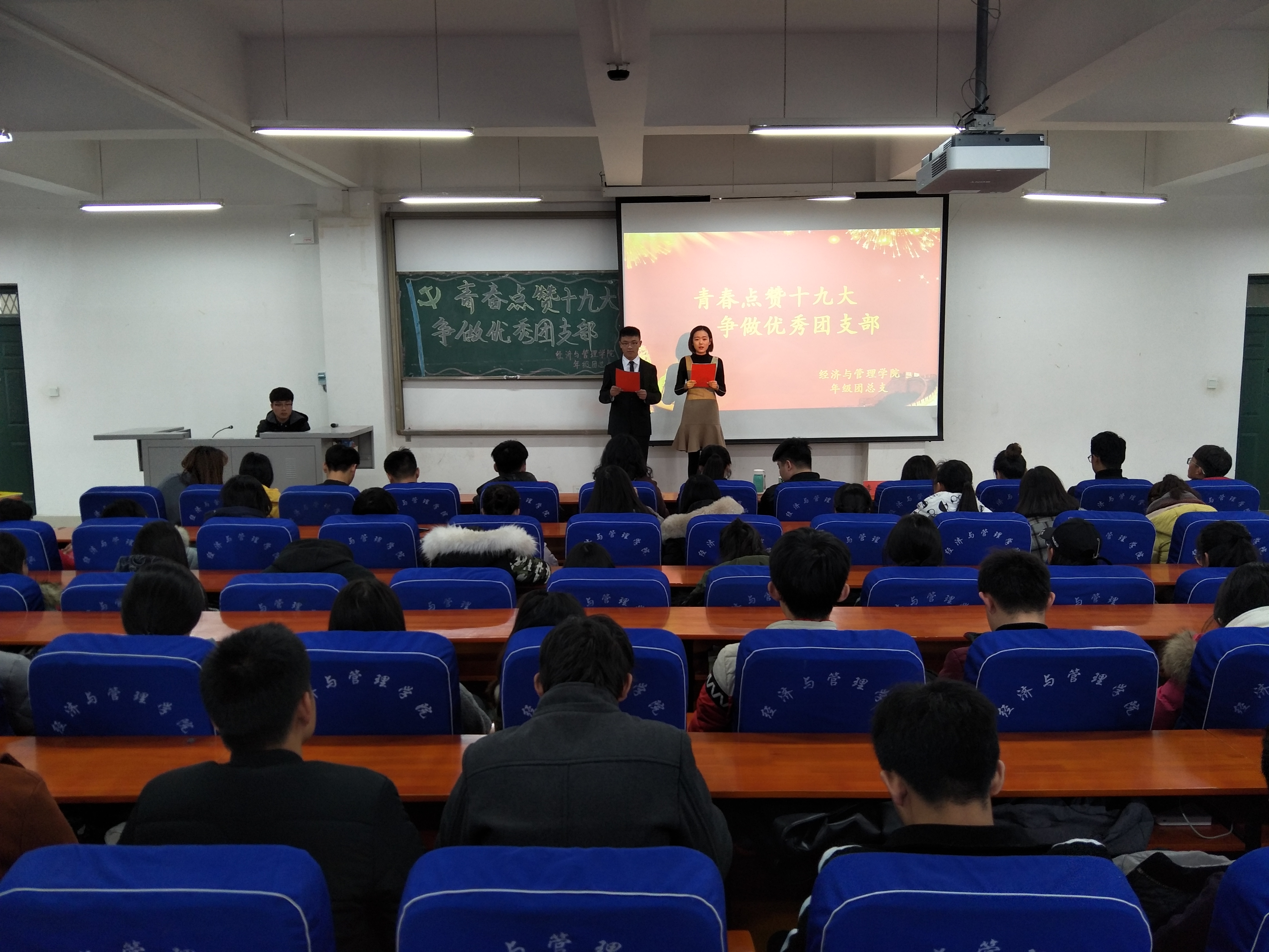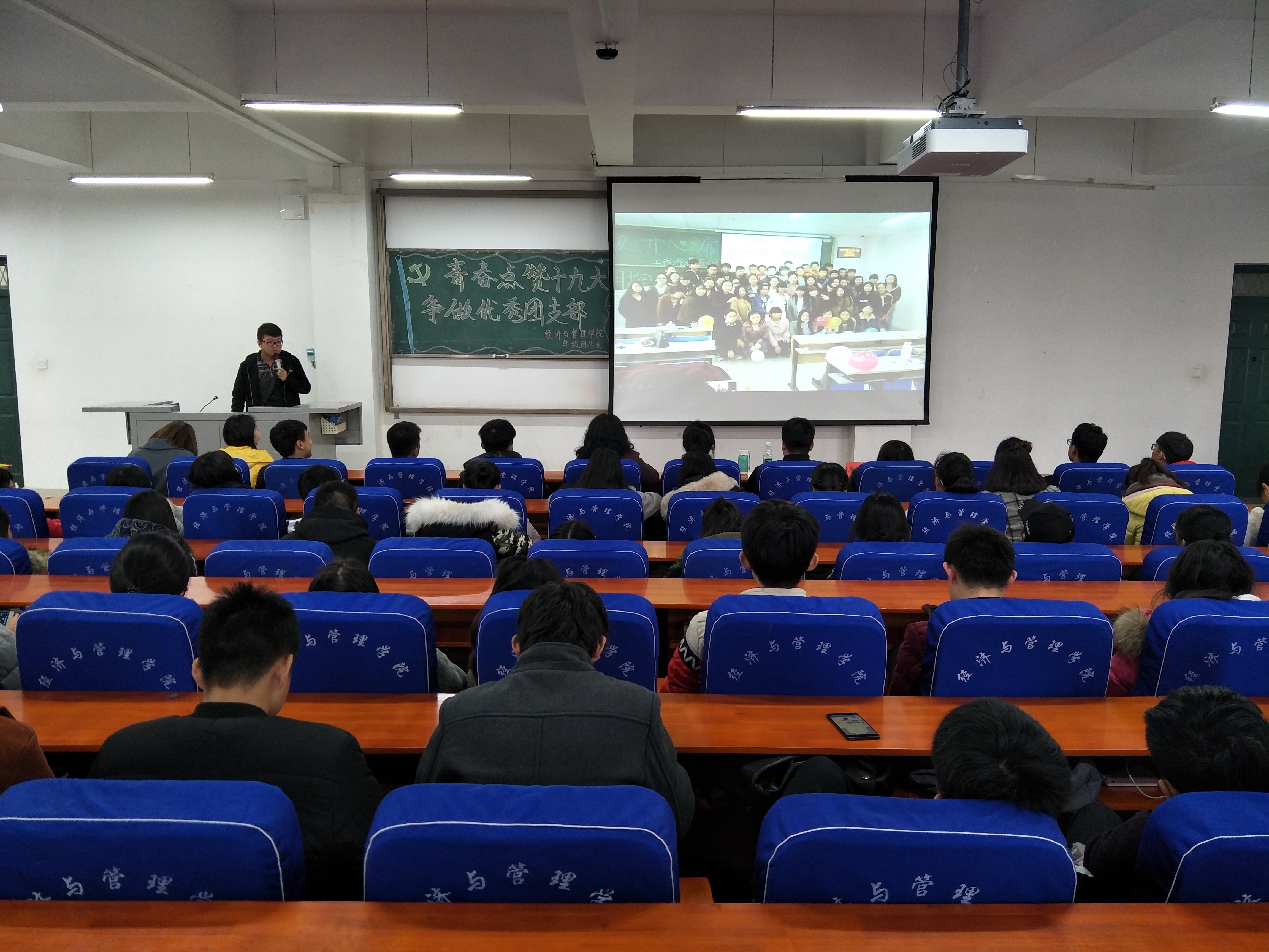 为深入学习十九大精神,加强各团支部的建设,展现经管学院各团支部风采。经济与管理学院分团委年级团总支于12月14日中午12:30,在经管楼211成功举办了以“青春点赞十九大,争做优秀团支部”为主题的优秀团支部评选活动。我院参评班级部分学生参加了此次活动。