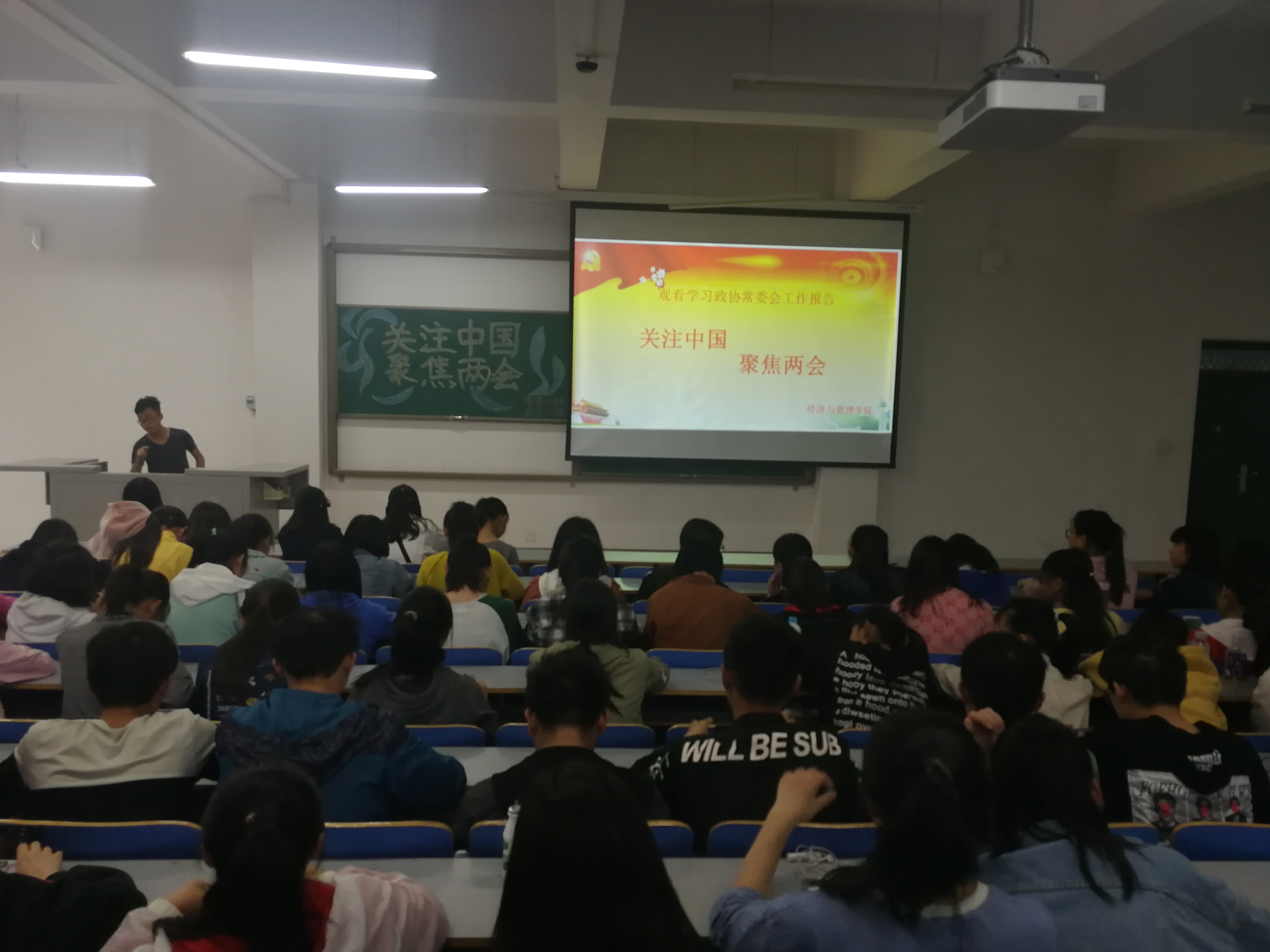 为了响应学院团委的号召,深入学习贯彻“两会精神”,经济与管理学院于2018年3月28日下午2:00在经管楼309举办了“关注中国,聚焦两会”主题团日活动,我院17级会计学、市场营销专业全体同学参加了此次活动。