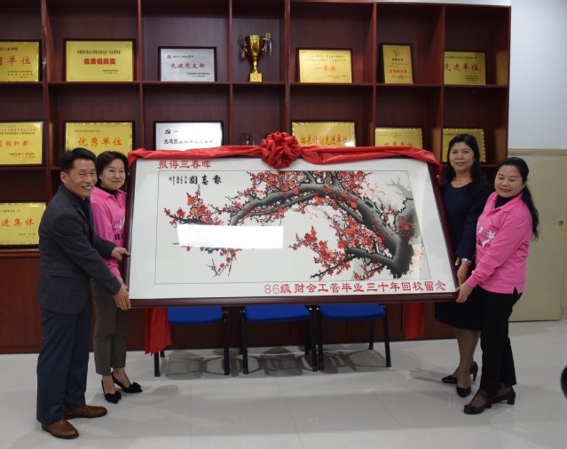 座谈会上,谢文清、栾祖盛、王爱军、赵新民、张进学、熊双林、郑晓彬、刘宇明、陈娟等与会校友踊跃发言,纷纷表达对母校培养的感恩之情,对母校建校40多年来所取得的巨大成就感到无比欣喜与自豪。校友们纷纷表示将牢记母校和恩师们的嘱托,秉承“为之则易,不为则难”的校训,努力工作,以优异的工作业绩回报母校和社会。校友们的发言务实而深情,气氛热烈融洽。校友们为了表达对母校的培养、恩师的感激之情以及对母校更名大学的祝贺,还自发自愿为学院捐赠了一幅苏绣《报春图》,寓意母校好事连连,在今后的建设和发展中取得更好、更大的成就。