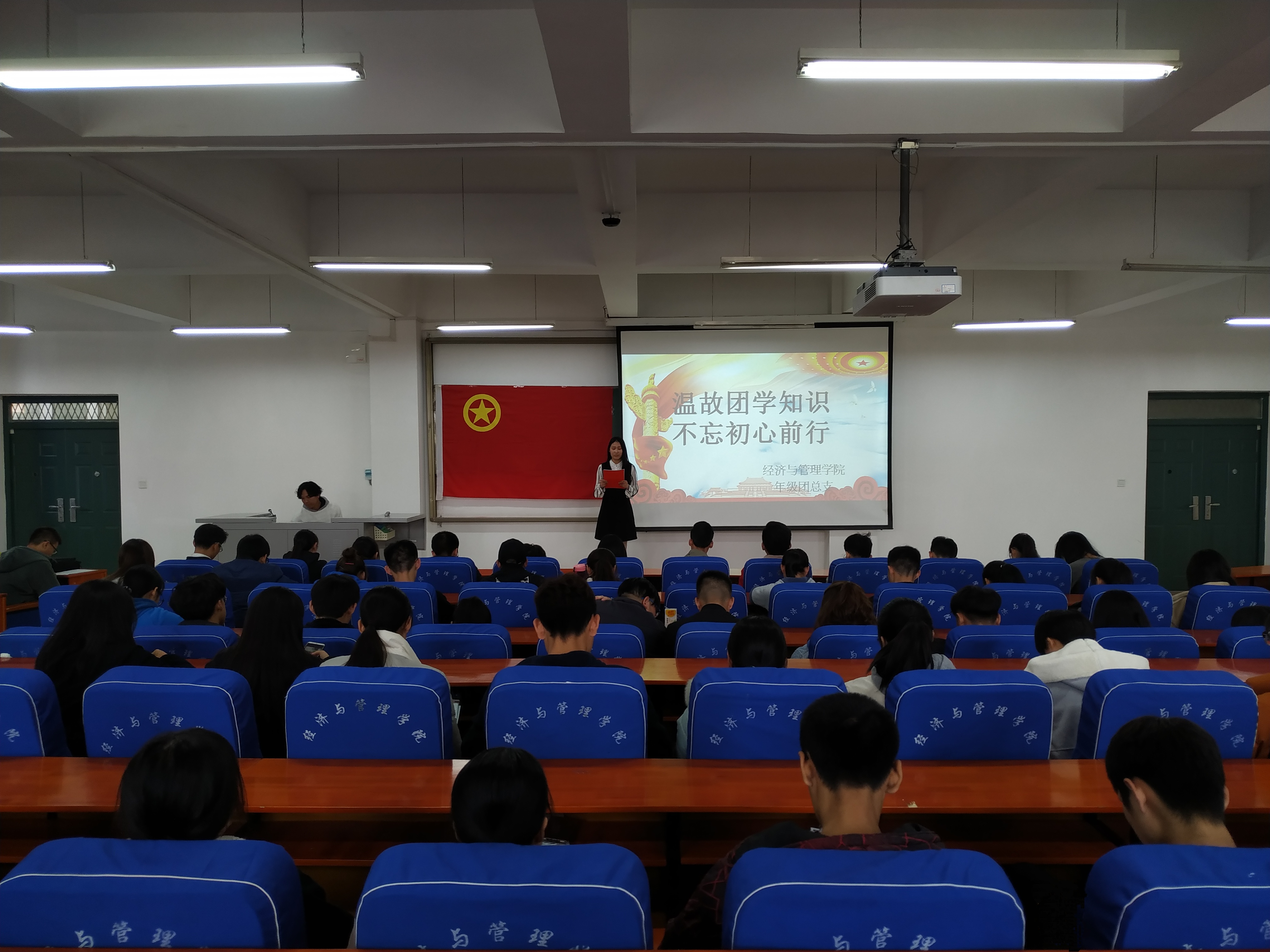 为进一步加深我院学生对共青团的了解,切实增强同学们的政治意识、责任意识,提高我院同学的凝聚力。经济与管理学院于2018年12月3日中午12:30在经管楼211举办以“温故团学知识,不忘初心前行”为主题的学习教育活动。18级各班班委以及社团主要负责人参加了此次活动。