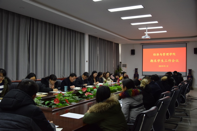 通过召开期末学生工作会议,我院进一步强化了全体专兼职辅导员、班主任的责任意识和安全意识,为我院期末各项工作的顺利开展奠定了坚实基础。会议结束后,我院将通过发放《经济与管理学院2019年寒假学生安全教育温馨提醒》宣传彩页、开展学生宿舍安全排查和假期学生去向统计、召开考风考纪教育班会等形式加强学生安全教育和考风考纪教育,深入扎实做好期末各项学生工作。