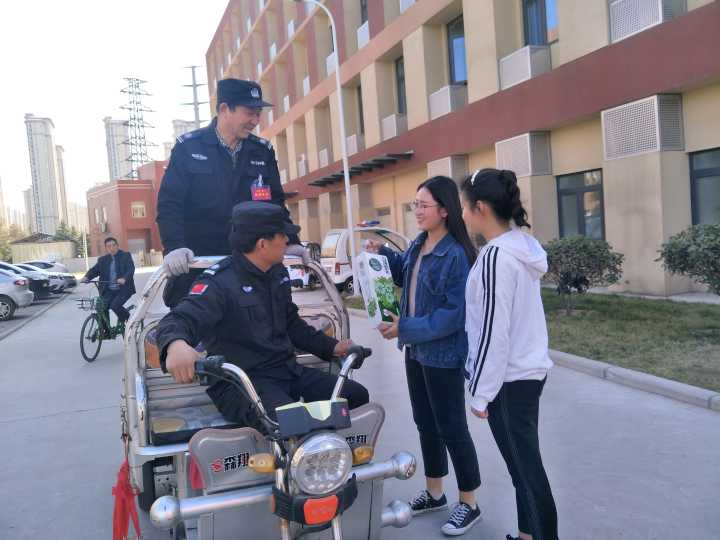 活动前期,工作人员认真执行各自的任务:采购物品、搭建帐篷、布置场地、联系废品回收等等。活动期间,工作人员十分热情的为前来参与活动的同学进行讲解,还给来参加活动的同学赠送了十分有意义的明信片、书签等纪念品。随后,工作人员将同学们捐赠的废旧物品卖给废品回收后,购买了卫生纸和塑胶手套等生活用品送给宿舍的阿姨和学校保卫处的叔叔以及环卫工人。最后,工作人员和校保卫处员工进行了短暂的交流,送上了对他们的问候和关心。