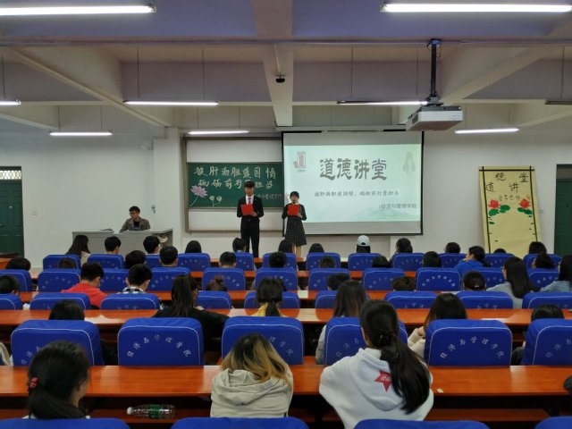 为进一步继承和发扬中华民族的爱国情怀,增强学生的社会责任感和使命感,经济与管理学院于4月3日中午12:40在经管楼211举办了以“披肝沥胆爱国情,砥砺前行勇敢当”为主题的道德讲堂活动。我院第61期入党积极分子参加了此次活动。