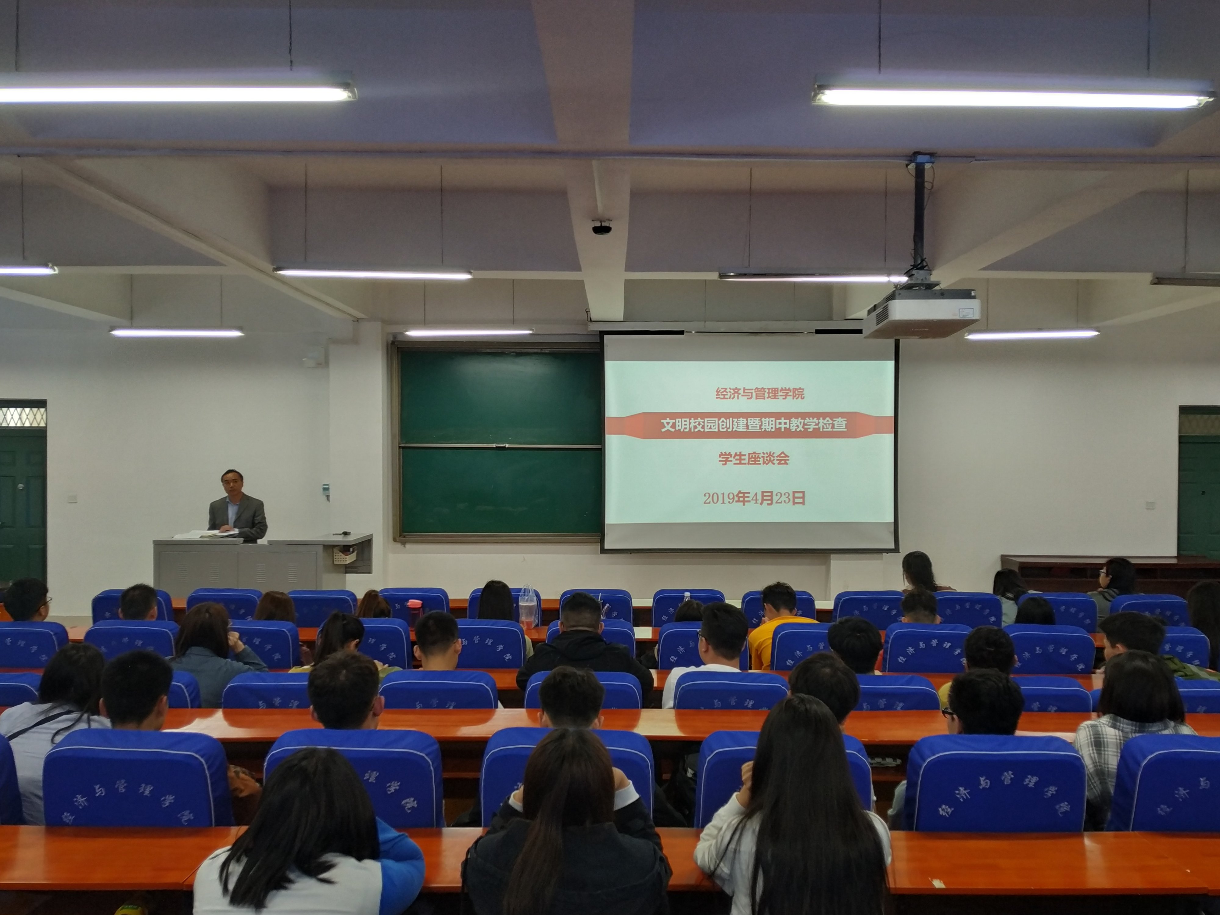 2019年4月22日中午12:30,文明校园创建暨期中教学检查学生座谈会在经管楼211召开。党总支书记张云超、副院长仝新顺、辅导员代表、教学教务秘书出席了本次会议,16级、17级、18级班委成员参加了本次会议。会议由副院长仝新顺教授主持。
