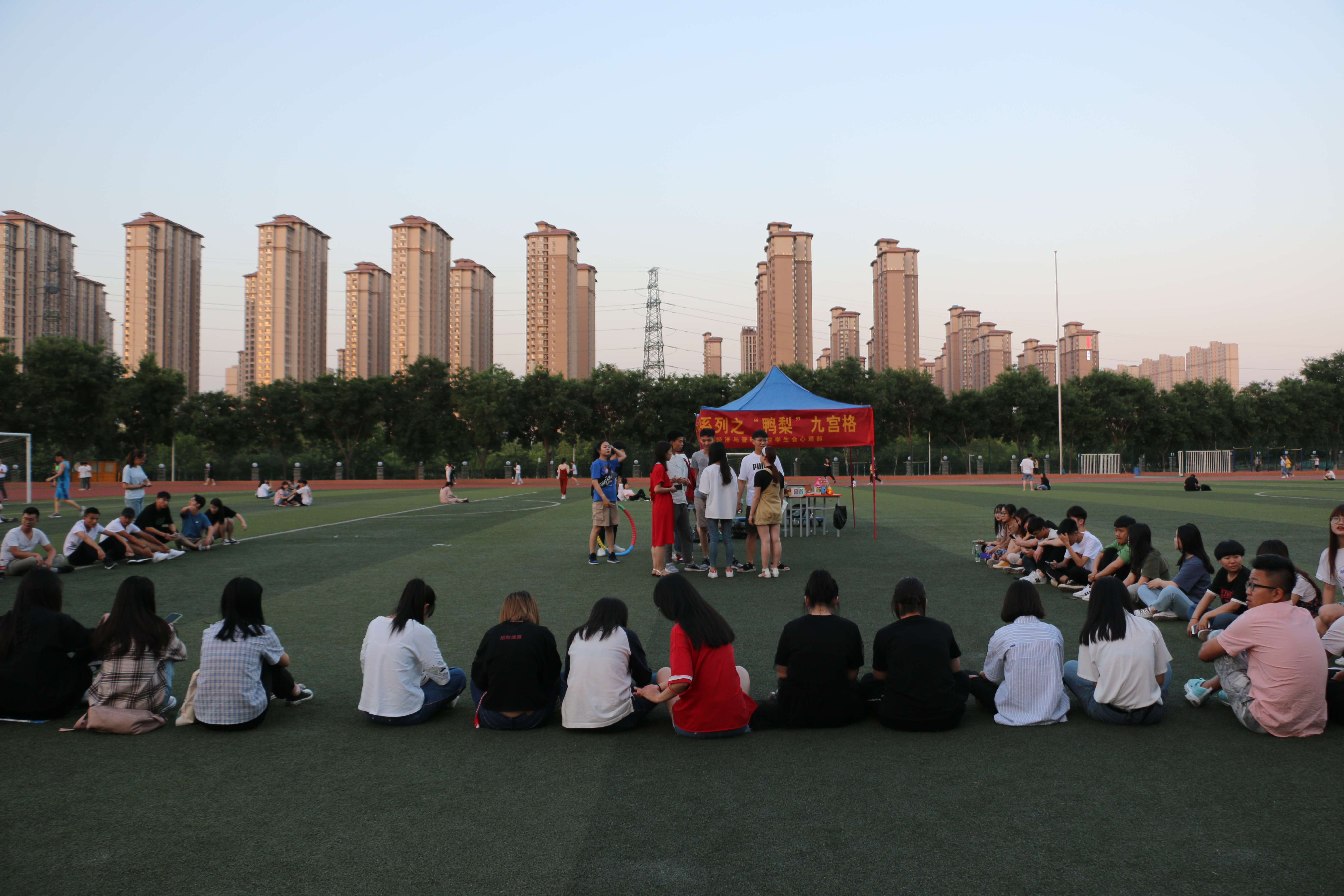 为进一步提高大学生心理健康知识水平,减轻大家生活中产生的压力,让更多的同学能够放松身心,以更加积极的心态去面对大学生活,以更好的状态投入到学习之中,经济与管理学院于5月21日下午19:00在科学校区足球场举办了蒲公英素质提升系列项目“拥抱阳光,放飞梦想”之鸭梨九宫格活动。