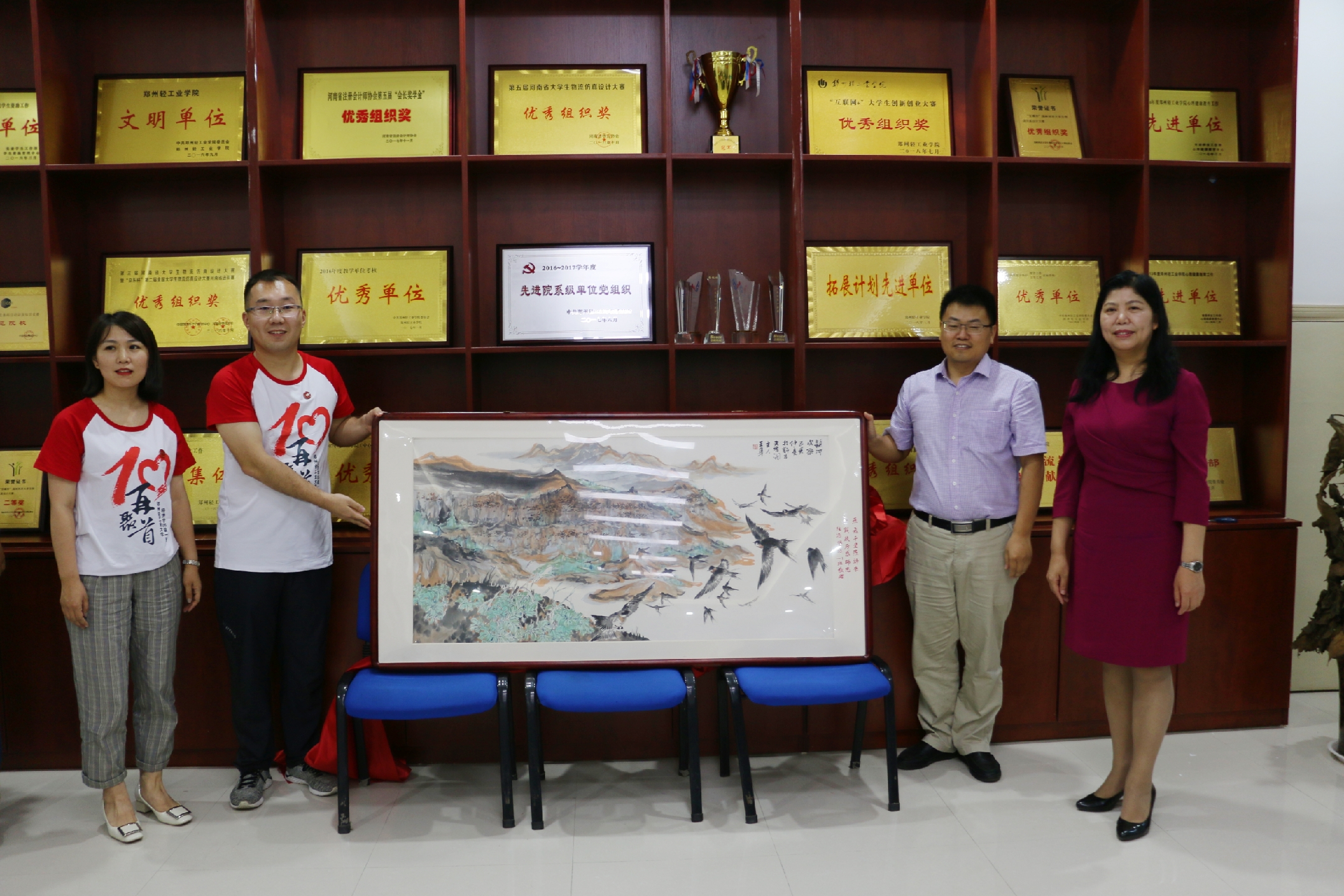 座谈会上,校友们踊跃发言,回顾了大学期间学习生活的点点滴滴,纷纷表达了对母校培养的感恩之情。校友们纷纷表示将牢记母校和恩师们的嘱托,秉承“为之则易,不为则难”的校训,努力工作,以优异的工作业绩回报母校和社会。经济学专业校友们为学院捐赠了一幅书画作品,表达对母校的感恩之情。