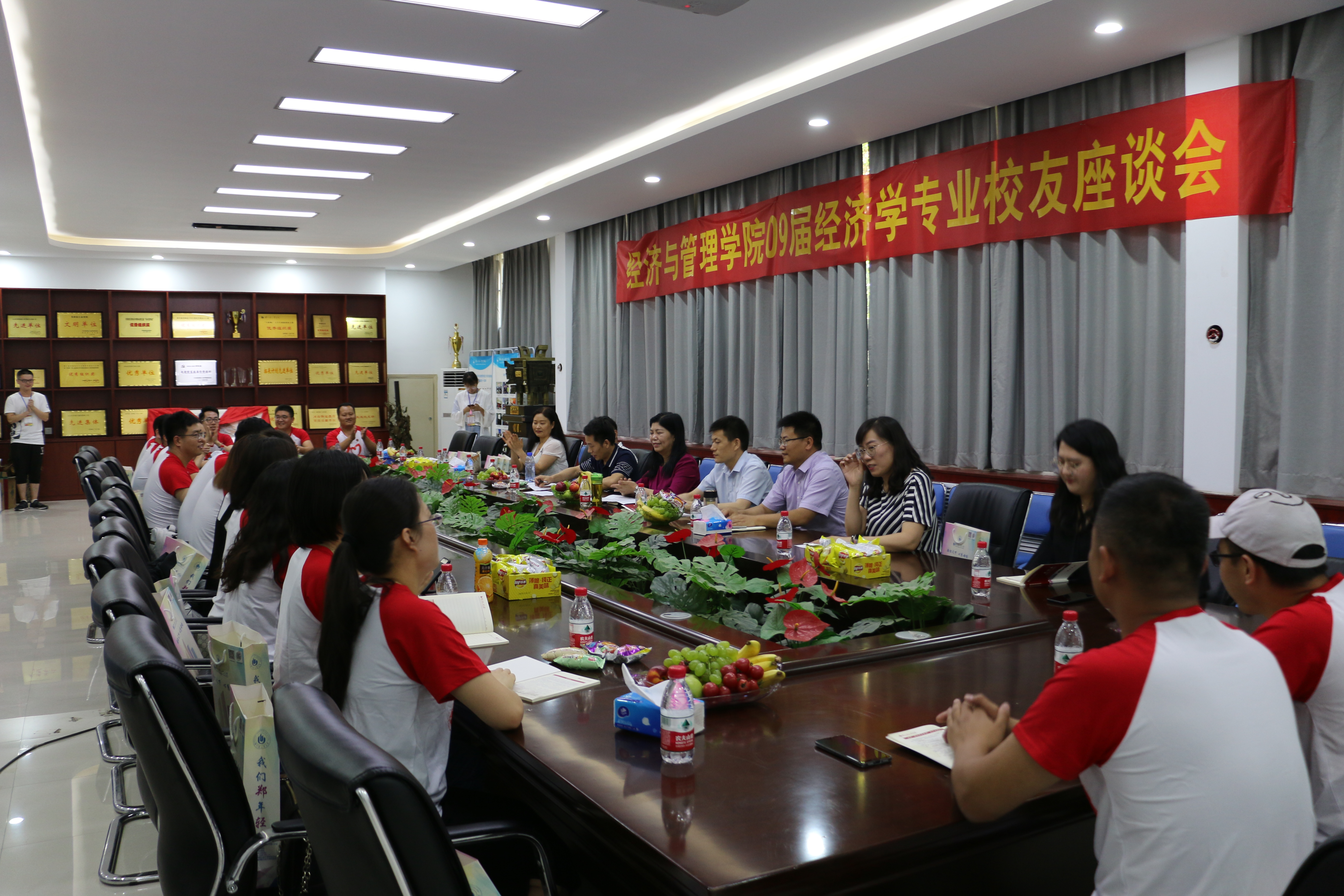 6月8日下午,经济与管理学院校友座谈会在经管楼116会议室召开。校友总会办公室主任卢中宁,经济与管理学院班子成员,党政办公室,专业教师代表,校友工作联络员及经济学专业校友参加了座谈会。座谈会由党总支副书记陈章美主持。