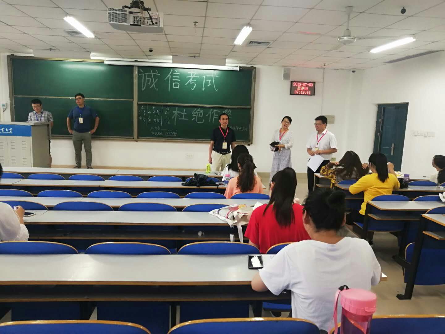 为了更加深入了解学生的考试及教师监考情况,严肃考风考纪,切实加强学风建设,2019年7月3日上午,经济与管理学院组织开展期末考试巡查工作,学院全体领导班子成员、党政办工作人员以及专职辅导员参加了巡查。