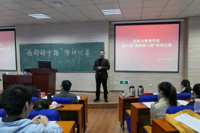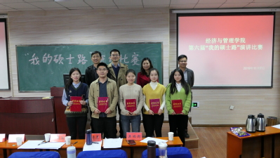 为了锻炼同学们的演讲水平,增进同学们之间的了解,丰富研究生的校园文化生活,2019年11月7日下午,经济与管理学院第六届研究生“我的硕士路”演讲比赛在经济与管理学院311室正式拉开帷幕,经济与管理学院副书记陈章美、副院长符加林、MBA和MPAcc项目中心主任彭青秀、研究生导师张省、陈昱、辅导员吴雨衡参加了本次演讲比赛,参加本次比赛的还有经济与管理学院2019级研究生30余人。本次演讲比赛的主持由高桂圆同学担任。