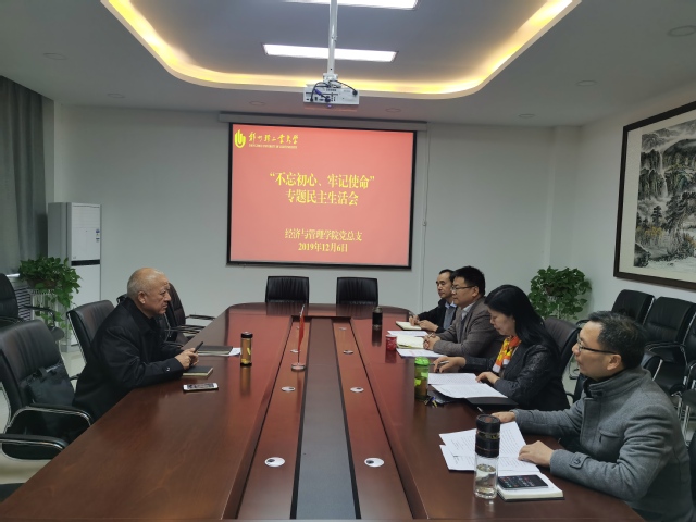 2019年12月6日上午,按照学校党委《关于开好“不忘初心、牢记使命”专题民主生活会的通知》要求,经济与管理学院在经管楼219室召开领导班子“不忘初心、牢记使命”专题民主生活会。校纪委书记张晓根到会指导,学院领导班子成员参加会议,会议由党总支书记张云超主持。