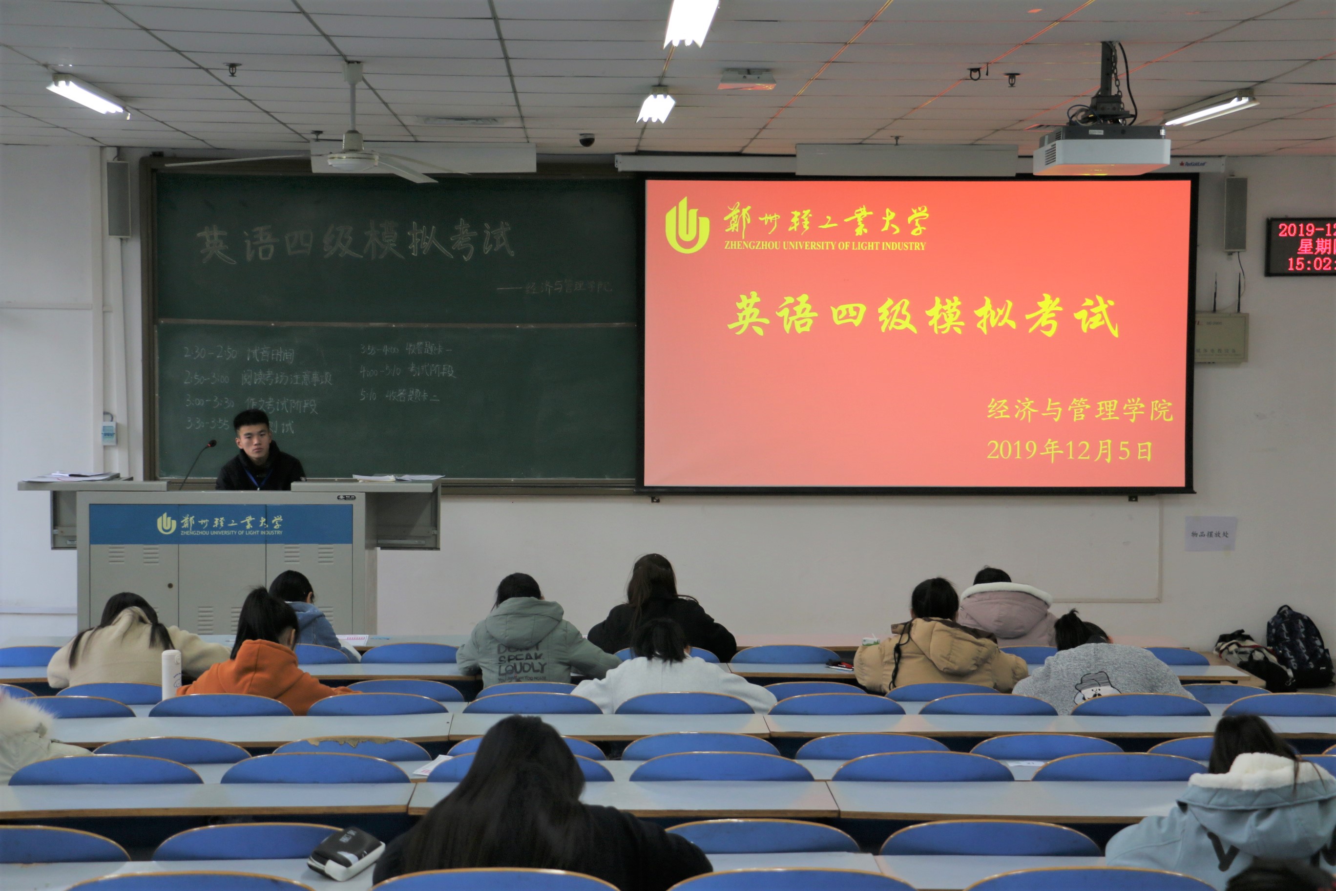 为了让广大学生更好地适应英语四级考试题型、了解考试流程,2019年12月5日下午,经济与管理学院在第三教学楼组织大学英语四级模拟考试,近三百名学生参加考试。