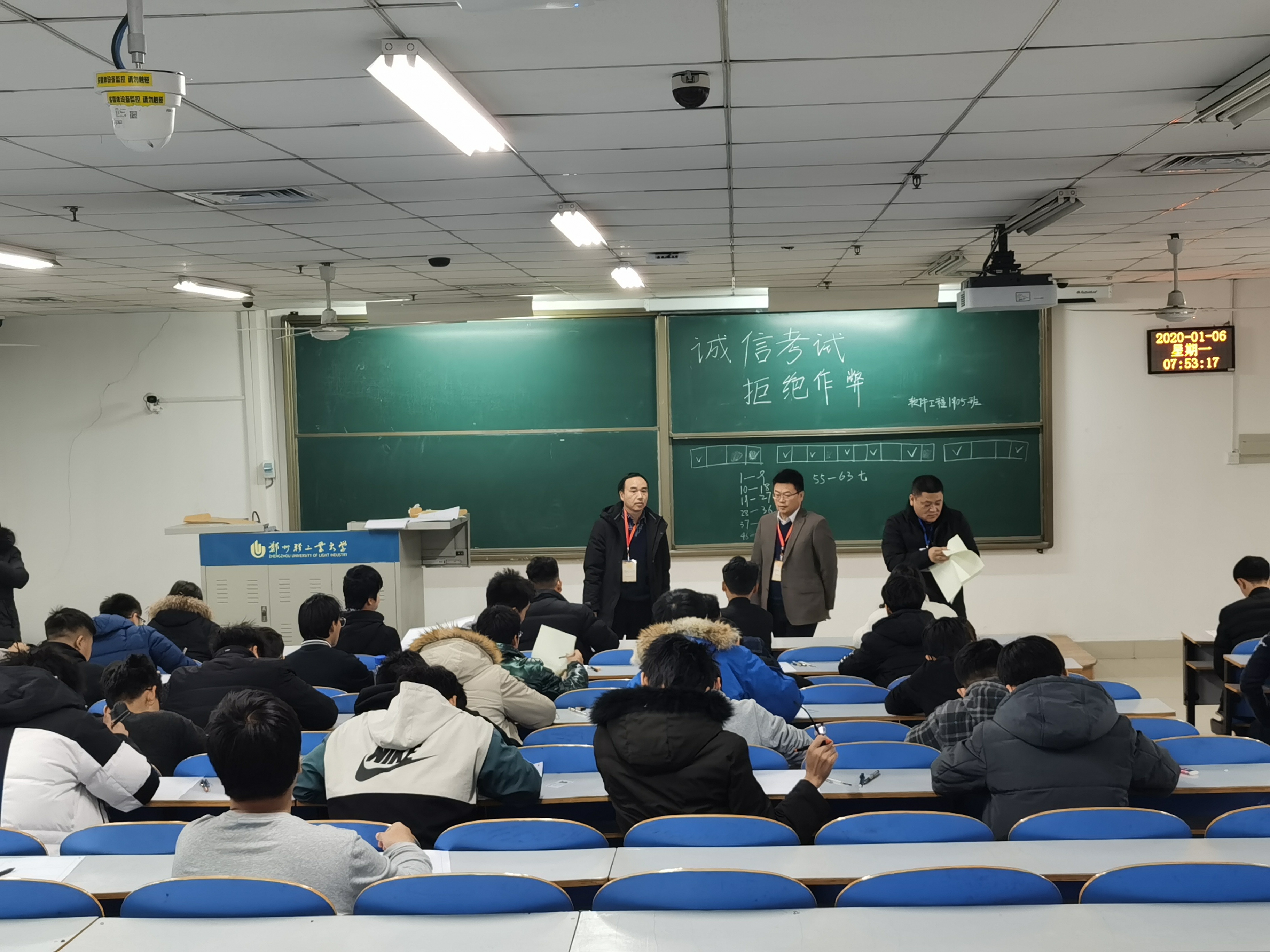 本次期末考试,我院坚持以诚信教育为基础,以监考员培训为措施,以巡考组为保障,切实保证期末考试工作的顺利开展。一是强化诚信教育,严肃考风考纪。我院各班分别召开了期末考风考纪教育主题班会,各班辅导员再次向同学们强调考试纪律以及考试违纪的严重后果,要求同学们务必诚实做人,诚信考试;二是认真组织监考员培训,规范监考操作流程。我院组织全院教师认真学习《18新利直播 考场规则》和《18新利直播 监考员操作规程》等相关文件,确保全院教师(尤其是新进教师)全面掌握文件要求,严格执行考场规则和操作规程;三是积极组织期末考试巡查工作,成立学院巡考组。我院成立以学院班子成员、专职辅导员及教学管理人员组成的巡考组,对涉及到我院学生及教师的所有考试进行巡查,确保期末考试工作的顺利进行。