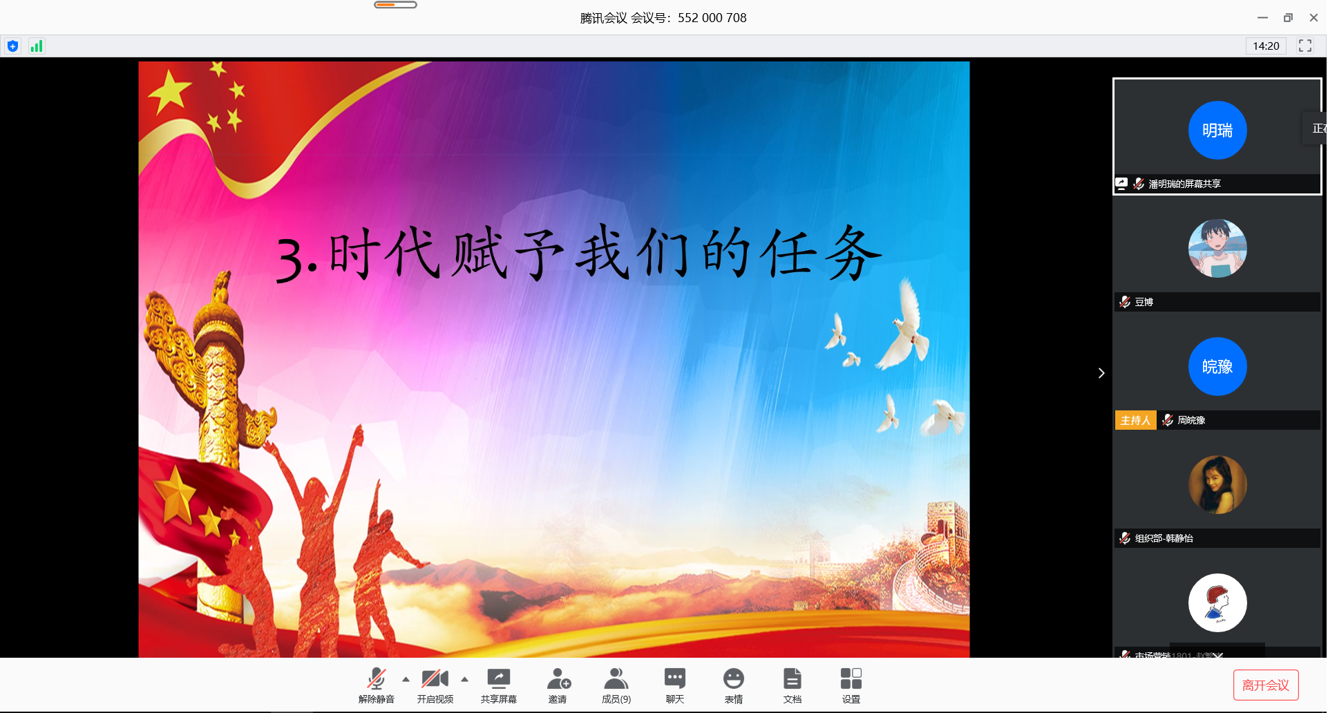 “五四精神,传承有我”线上团课由全体团学代表通过网络隔空齐唱团歌拉开序幕,市场营销1801班团支部书记赵繁森为大家分享,他结合五四运动的光辉历史,把“爱国、进步、民主、科学”的五四精神传递给大家,并通过感人的抗疫故事,着重将当下疫情与爱国主义教育紧密结合,突出科学精神在防控工作中发挥的重大作用,号召同学们要心怀家国、追求真理、努力学习、不负使命。新时代赋予当代青年要有新作为,广大青年要自觉坚持党的领导,努力担当时代赋予的责任,用力书写无愧时代的荣光。团课结束后同学们积极发言分享了各自对本次团课的感悟,作为新时代团员青年,要将五四精神赋予新时代的意义,在团徽光芒的照耀下,用知识武装自己,用行动陶冶情操,不辱使命、提升自己、传承精神、报效祖国。