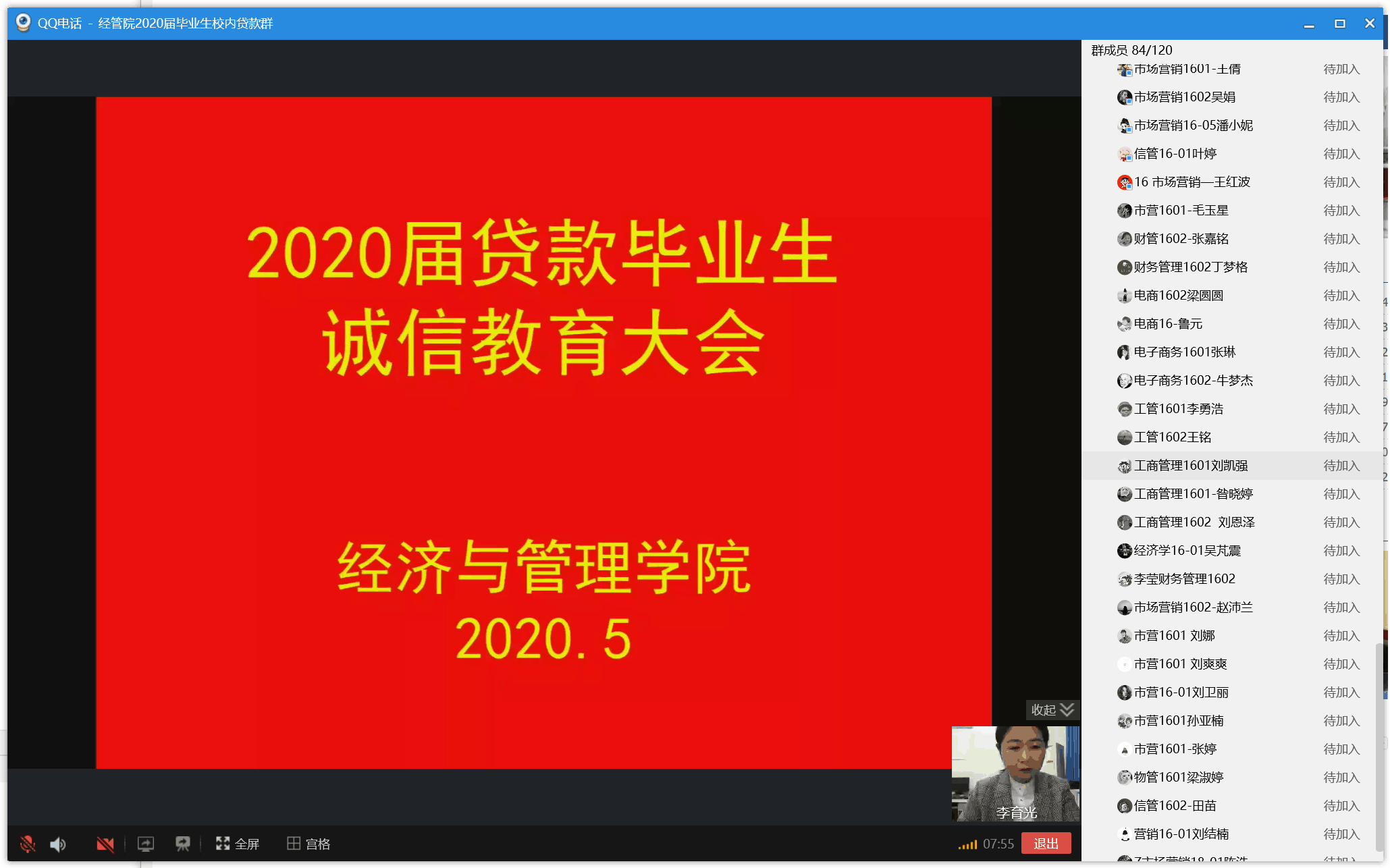 为帮助贷款毕业生了解掌握还款流程和注意事项,加强贷款毕业生诚信教育,57日,经济与管理学院通过QQ群课堂召开2020届贷款毕业生线上诚信教育大会。