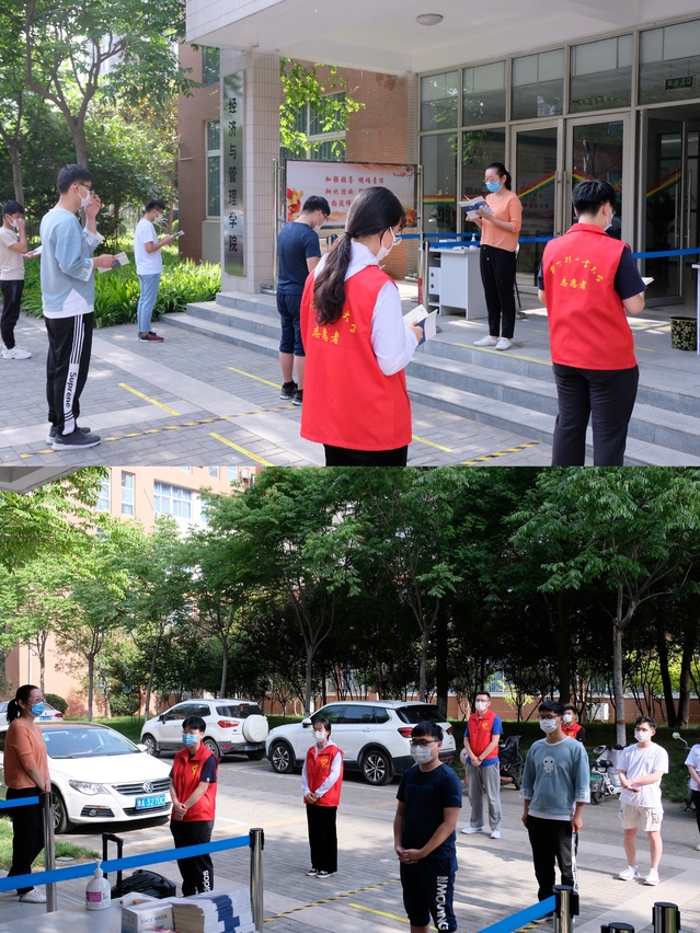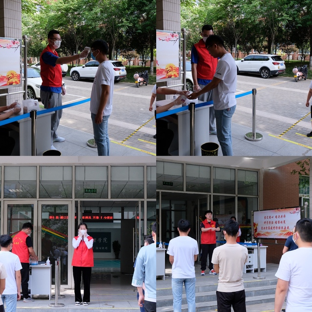 5月17日下午,学院组织返校同学们在经管楼南门开展“抗疫有你我,爱在一米外”防疫抗疫实操演练活动,活动以宣传疫情防控知识、落实防控措施、提升防控认知为主题,引领学生学习《新型冠状病毒肺炎防控知识手册》相关知识;由志愿者引导学生对安全进出教学楼场景进行实操演练,做好测体温、做消杀、换口罩等环节;宣传“一口二手三消杀,四用公筷五通风,一米之外保平安”防疫抗疫宣传标语,培训返校学生正确佩戴口罩和正确洗手步骤,确保学生正确做好个人防护。志愿者们分步骤分措施与返校学生做好演练工作,引导学生学习疫情防控相关知识与实操训练,确保每位同学通过培训知识及实操训练,掌握疫情期间学生应该在校园、宿舍、教室、食堂内的抗疫步骤及疫情突发事件的应急处置步骤,进一步增强学生的安全健康保障。