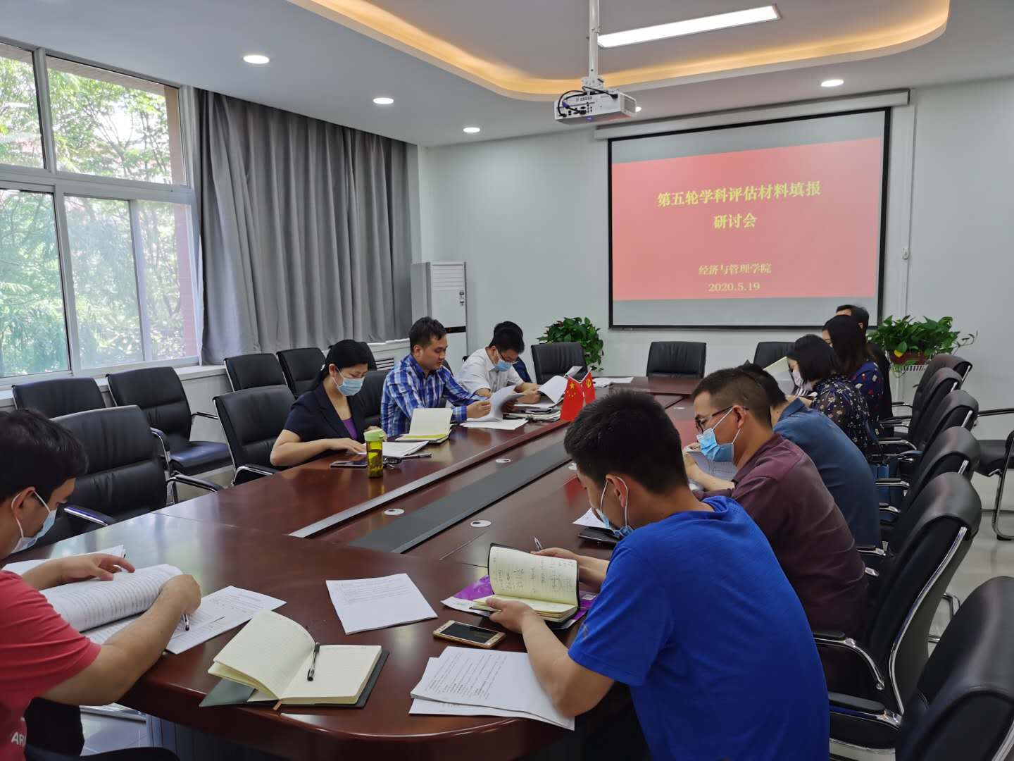 5月19日上午,经济与管理学院在经管楼201会议室召开第五轮学科评估研讨会。校学科建设办公室肖艳秋主任、宋胜利副主任到会指导。经济与管理学院党委书记张云超、院长刘珂、副院长符加林及各系部主任参加了本次会议。会议由刘珂院长主持。