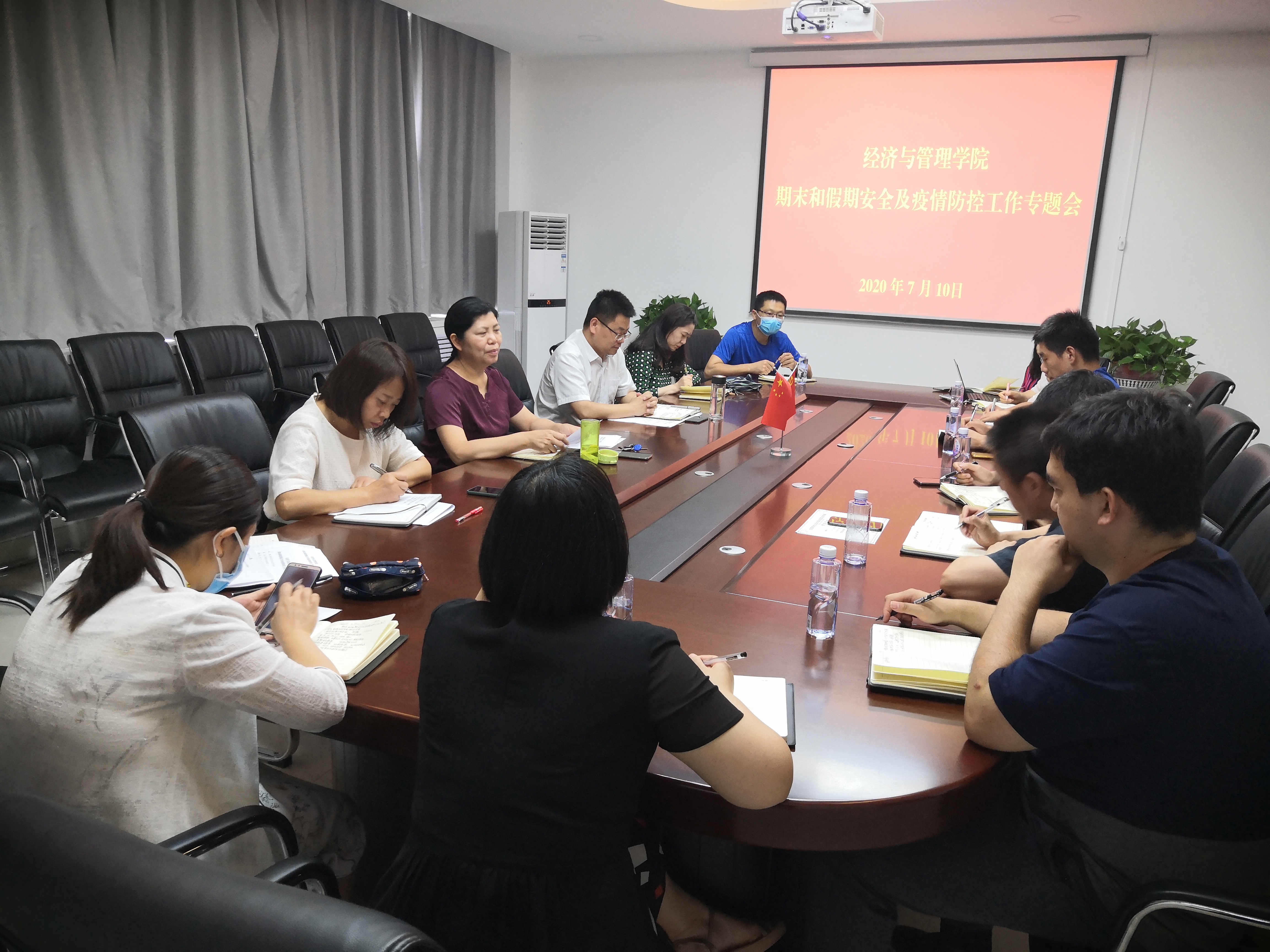 为贯彻落实学校2020年安全工作会议精神和疫情防控工作有关要求,扎实做好期末和暑假安全及疫情防控工作,经济与管理学院于7月10日下午召开了期末和暑期安全及疫情防控工作专题会议。会议由刘珂院长主持,学院领导班子成员、各系主任、各科室负责人参加了会议。