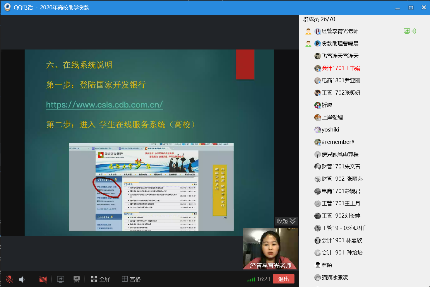 宣讲会上,李老师结合我校实际情况,详细介绍了申请助学贷款必须具备的条件,首贷和续贷的区别,贷款的额度及办理手续、所需材料等相关内容,并对今年助学贷款政策的调整做了详细的解释。此外,她还说明了申请助学贷款需承担哪些违约责任、个人贷款和个人征信等相关事宜,并介绍了国家的助学贷款代偿相关政策。最后,李老师为大家讲解了国开行在线系统的操作方式以及注意事项,并对同学们的疑问耐心解答。