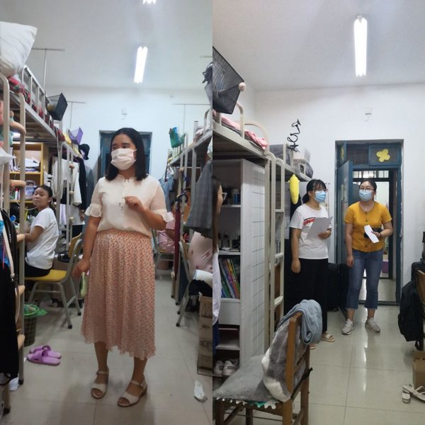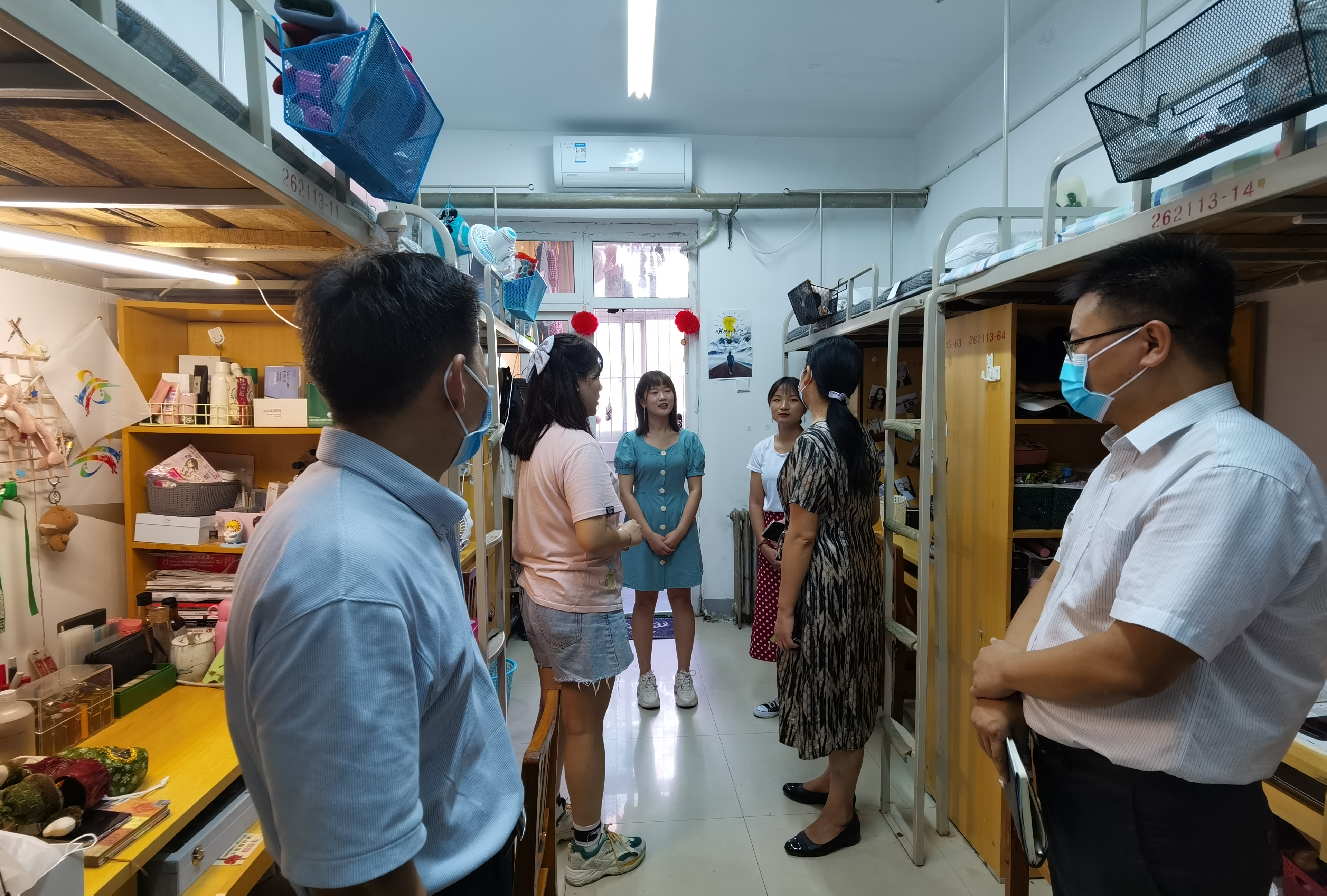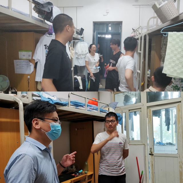 学院领导及辅导员们逐一走访每个学生宿舍,与同学们进行亲切的交谈。久别重逢,同学们热切地向老师们讲述了疫情期间居家学习过程发生的趣闻,表达了对顺利返校学习的满足。老师们藉此向返校学生送上学院的关怀和问候,询问了学生们的返校行程情况,提醒大家在疫情防控常态化下,做好个人安全防护,注重体育锻炼,保持良好的生活学习规律,及时填报晨、午检和晚归寝健康打卡;寝室注意用电安全,适度使用空调;文明就餐,实现光盘行动,坚持独立生活和自主学习,为自己大学四年的生活做一个详细的规划,培养良好的生活作息习惯。对于今后在校学习过程可能会遇到的困难和问题,老师们表示学院会给予最大的帮助,并不断提醒同学们如果遇到困难要及时向学院、辅导员和宿舍管理员反映。