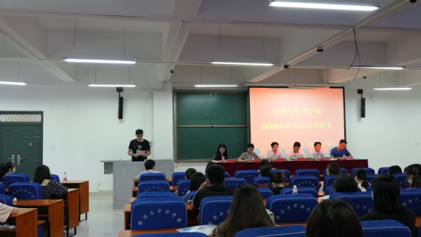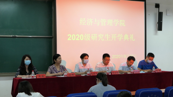 20209月10日下午,经济与管理学院2020级研究生开学典礼在经管楼211教室隆重举行。校党委研工部副部长、校研究生处副处长段龙江和学院领导张云超、刘珂、陈章美、张梅出席会议。学院研究生管理办公室、MBA和MPAcc教育中心老师,研究生导师代表及2020级全体研究生参加会议。会议由学院党委书记张云超主持。