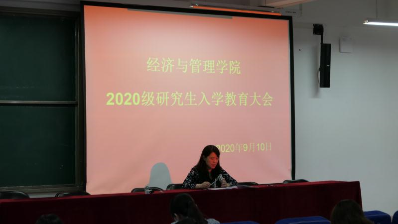 2020年9月10日下午,经济与管理学院2020级研究生入学教育大会在经管楼211教室隆重举行。学院党委副书记陈章美、副院长张梅出席会议。学院研究生管理办公室、MBA和MPAcc教育中心老师以及2020级全体研究生参加会议。