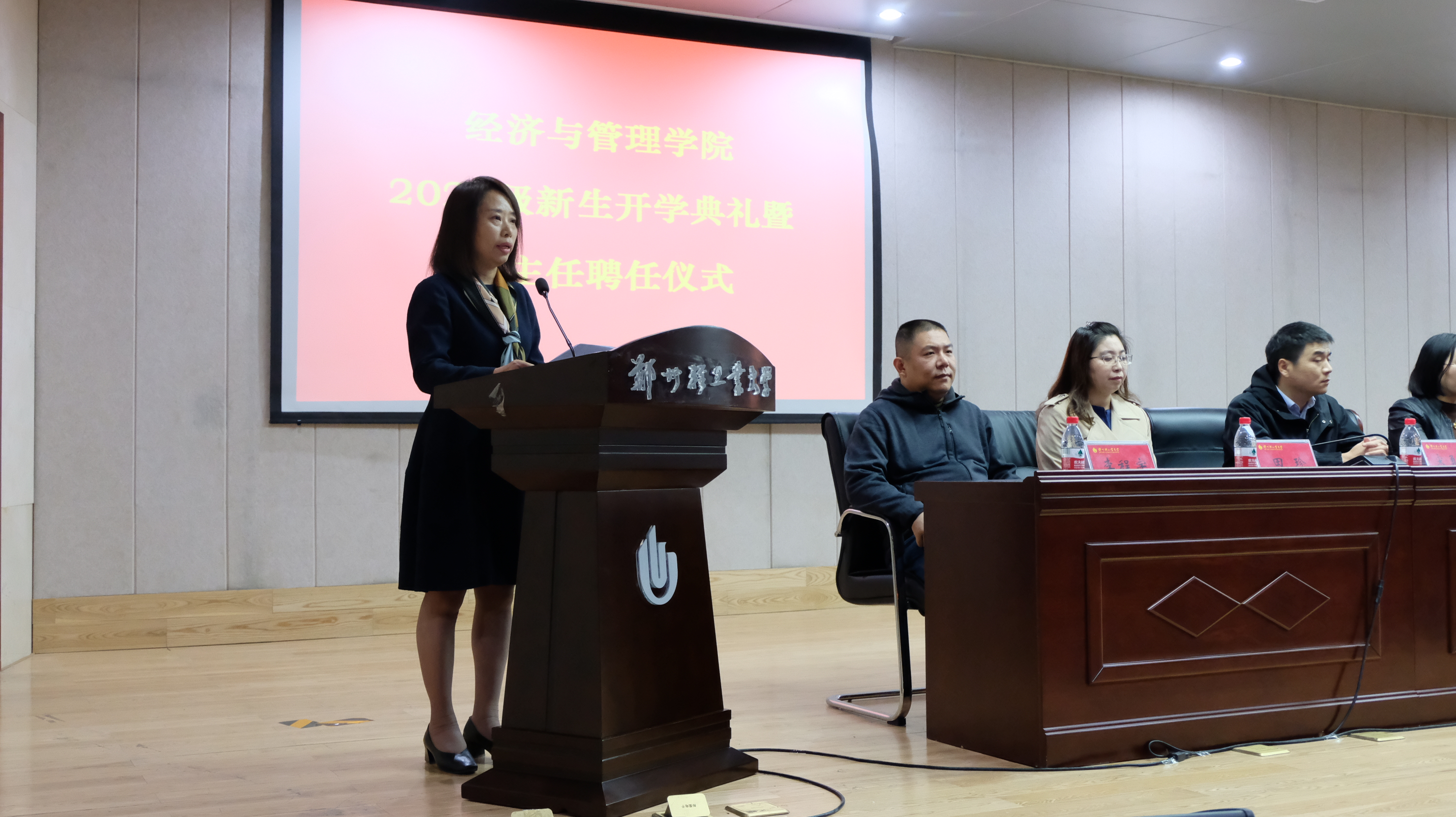 典礼伊始,雄壮的国歌徐徐奏起,大会正式拉开帷幕。安慧副院长宣读了《经济与管理学院关于聘请于博等10位教授、博士担任本科生班主任的决定》,随后经济与管理学院与会领导老师为受聘班主任颁发聘书。