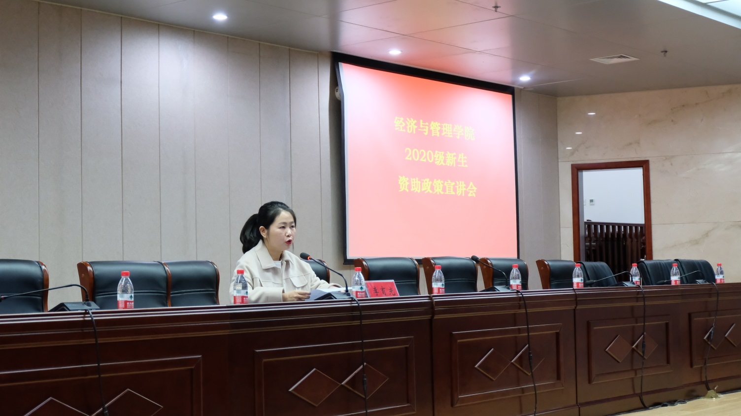会上,李老师向2020级新生详细解读了“奖、贷、助、补、减”和“新生绿色通道”六位一体的学生奖助体系,重点就国家励志奖学金、校内综合奖学金的评选要求及困难生、国家助学金、国家助学贷款的申请条件和办理流程进行了详细说明,并对在场同学进行了诚信感恩教育,希望同学们在之后的认定困难生和申请贷款过程中要实事求是填报材料,诚信做人,更要自立自强、珍惜机会、做好表率,常怀感恩之心,在有能力帮助到他人的时候要主动伸出援助之手。