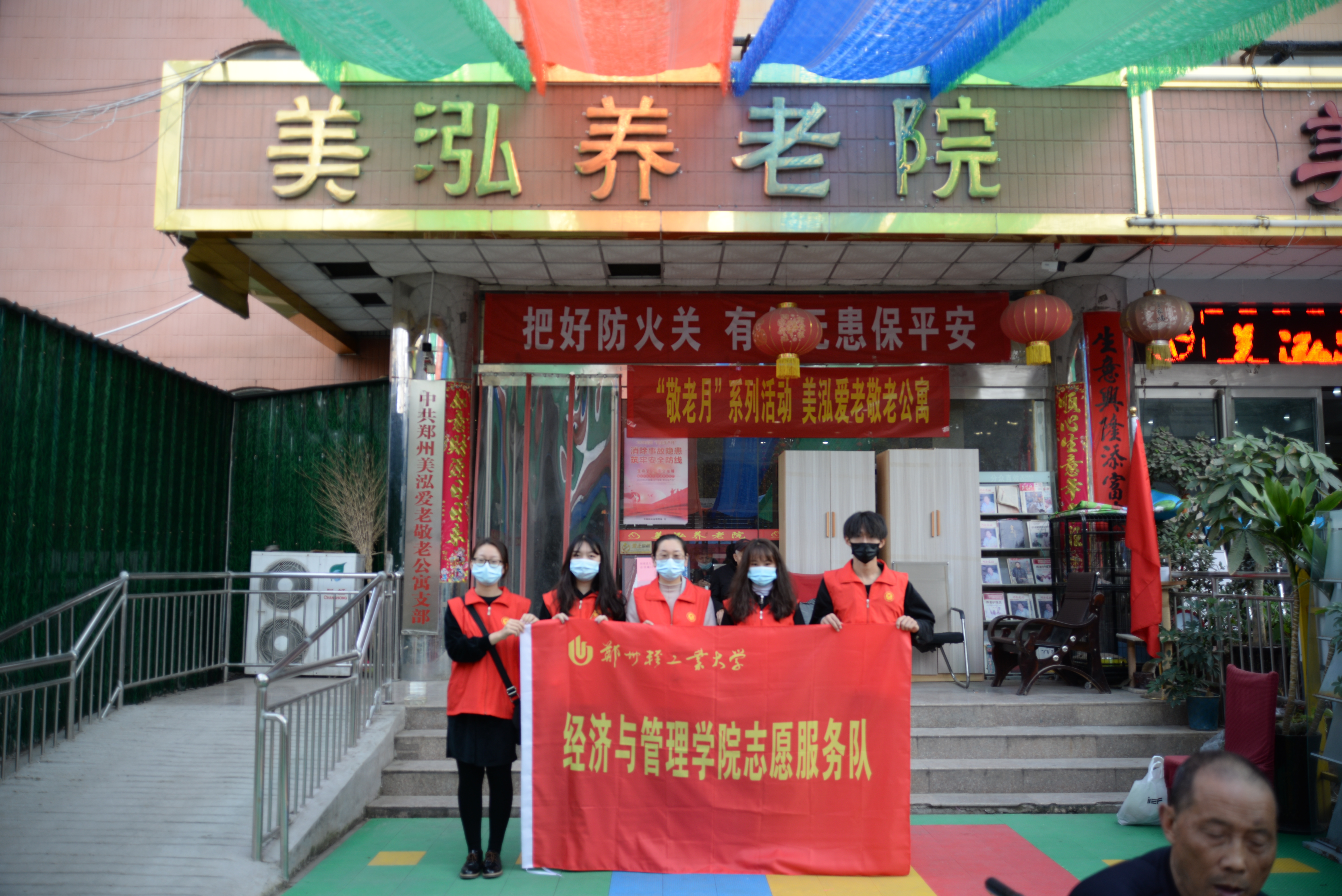 浓浓敬老情,情系你我他,为弘扬“尊老、敬老、爱老、助老的”中华优秀传统美德,践行“奉献、友爱、互助、进步”的志愿精神,增强大学生的社会责任感,2020年11月1日下午,18新利直播 经济与管理学院志愿服务队前往中原区美泓爱老敬老院开展“树敬老之风,促社会文明”志愿服务活动,志愿服务队的师生代表为老人们送去关爱和温暖。